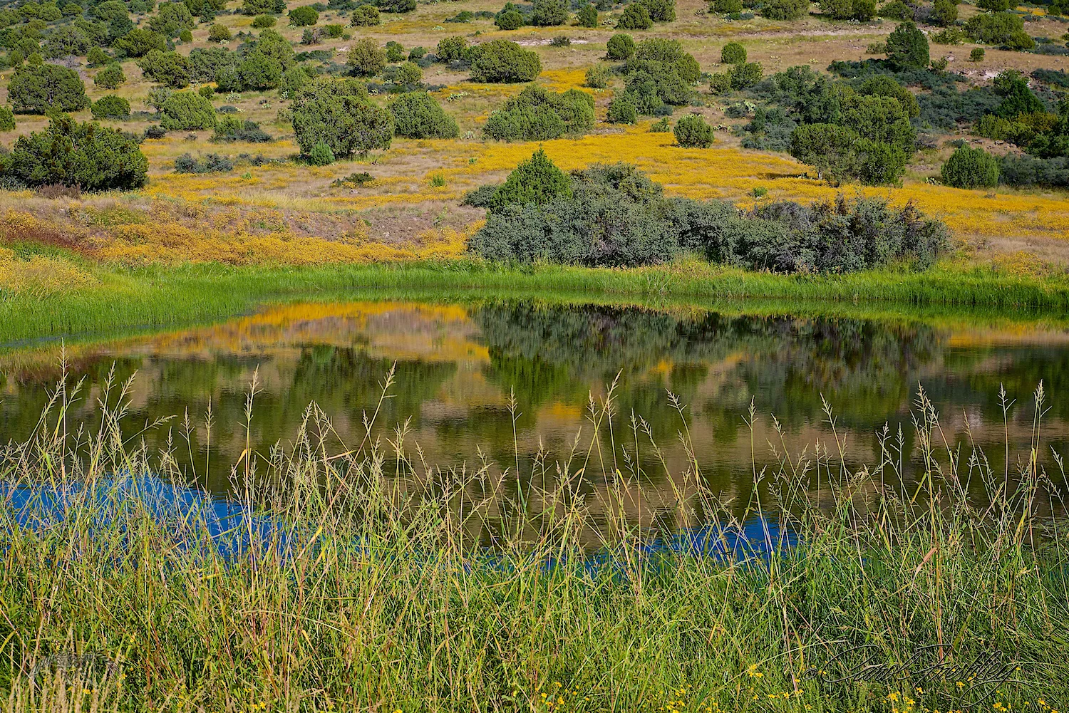 Now that you have seen the creek, we want to show you the journey to get there. We lucked out in driving amidst wildflowers, a wonderful pond, an old coral and just enough rock formations to keep us in 'Oh, stop please' mode. Rick patiently pulled over for every request.