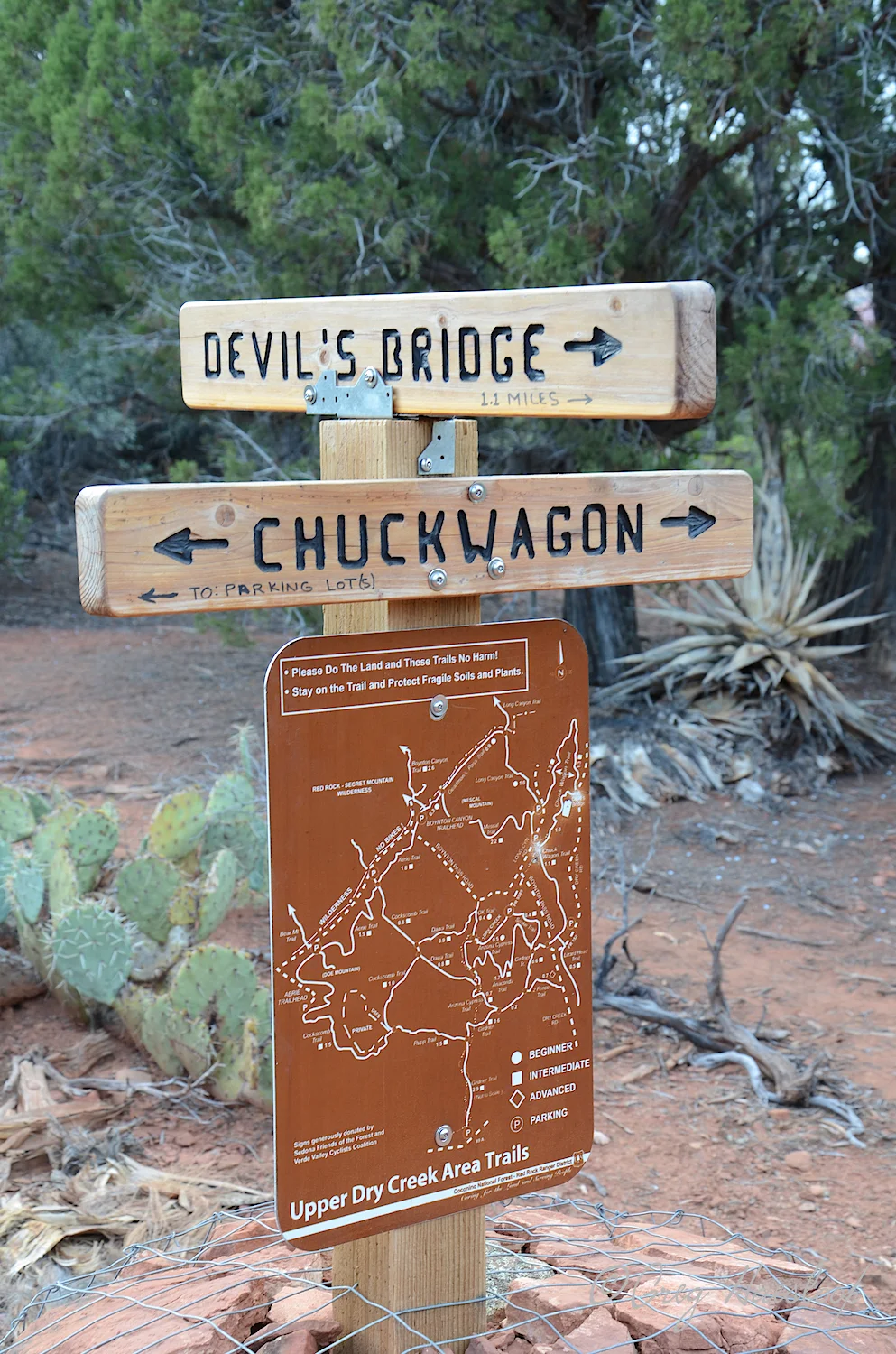 But, it did not turn out that way. The Ranger at the information desk did everything he could but forbid Greg to drive down that awful road. That meant that we would park at a different trailhead, hike a connector trail, hike along the Chuckwagon trail and then connect to the Devil's Bridge trail. That, by the way, is a four mile roundtrip hike!! It was going to be worth the try. Right?