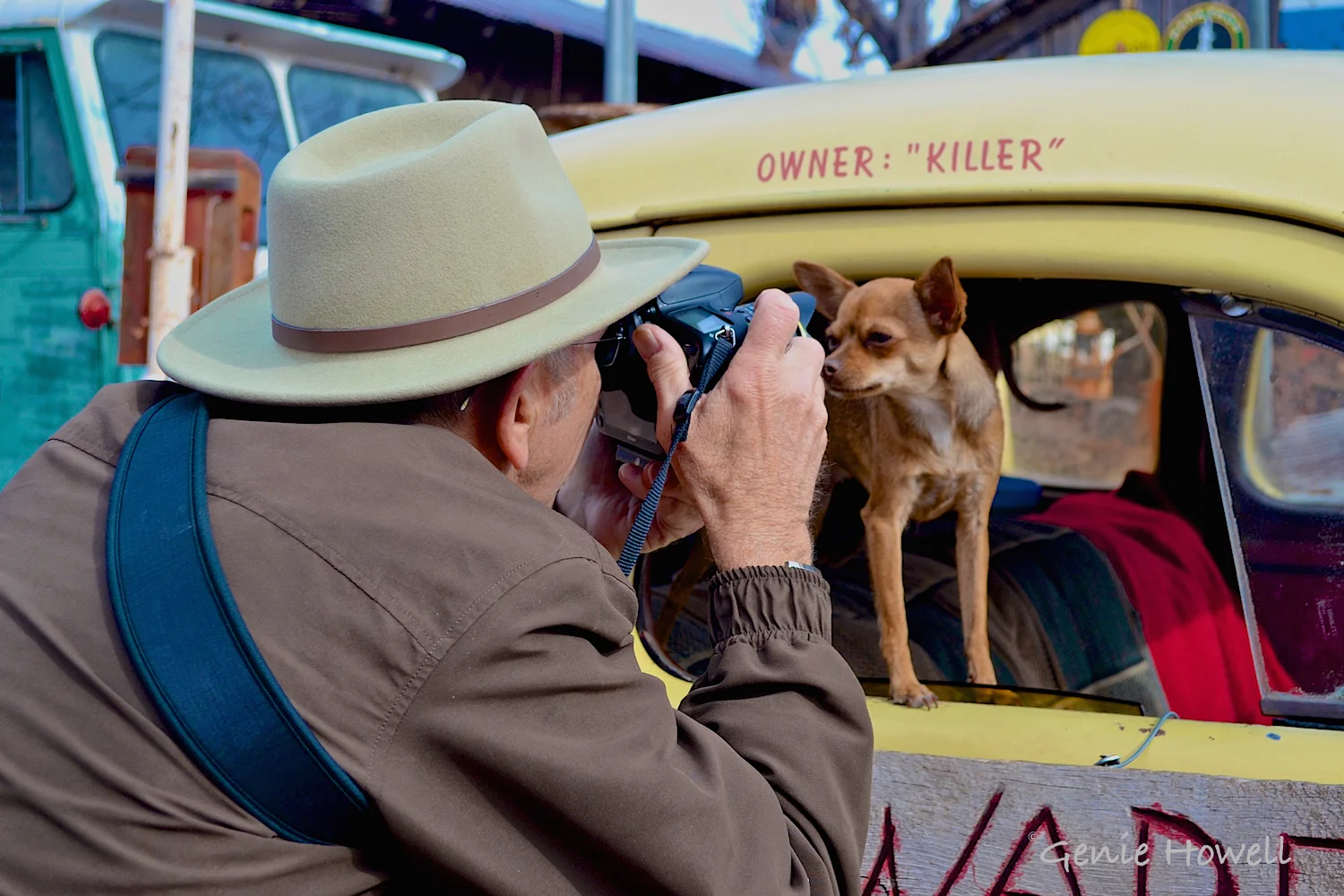 An old motor home. I would have been happy just walking around and capturing its funkie character. Not Tom. He goes for the GOLD.