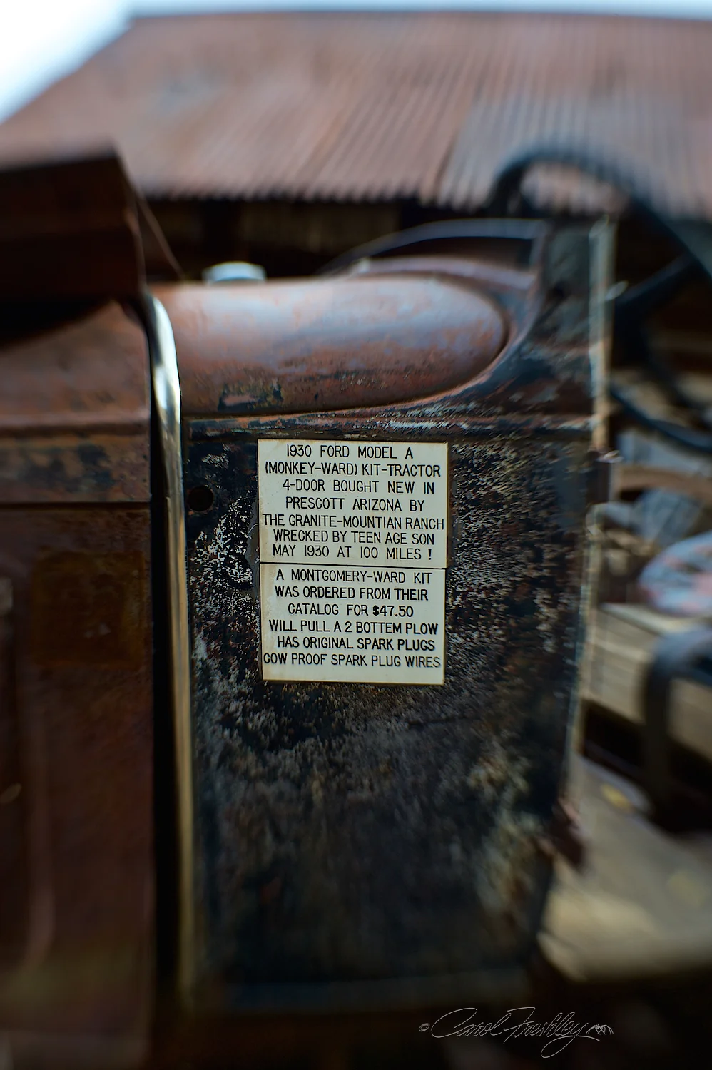 Welcome to the three new people who joined us for the first time. Genie, Jack and Sandy got their initiation to photo tripping with us by strolling around the Ghost Town and Gold Mine, clicking away at what some might consider 'junk' but if you get to know Tim and Don we quickly learn that each piece has a story and, now, a place to call home. Over the years, I have been going back to shoot this special site. I even have favorites that I am glad to see are still present! There is always something new and even more that I had not seen in a prior trip. Enjoy our photos. We hope that you get at least a small sense of this most fascinating place.