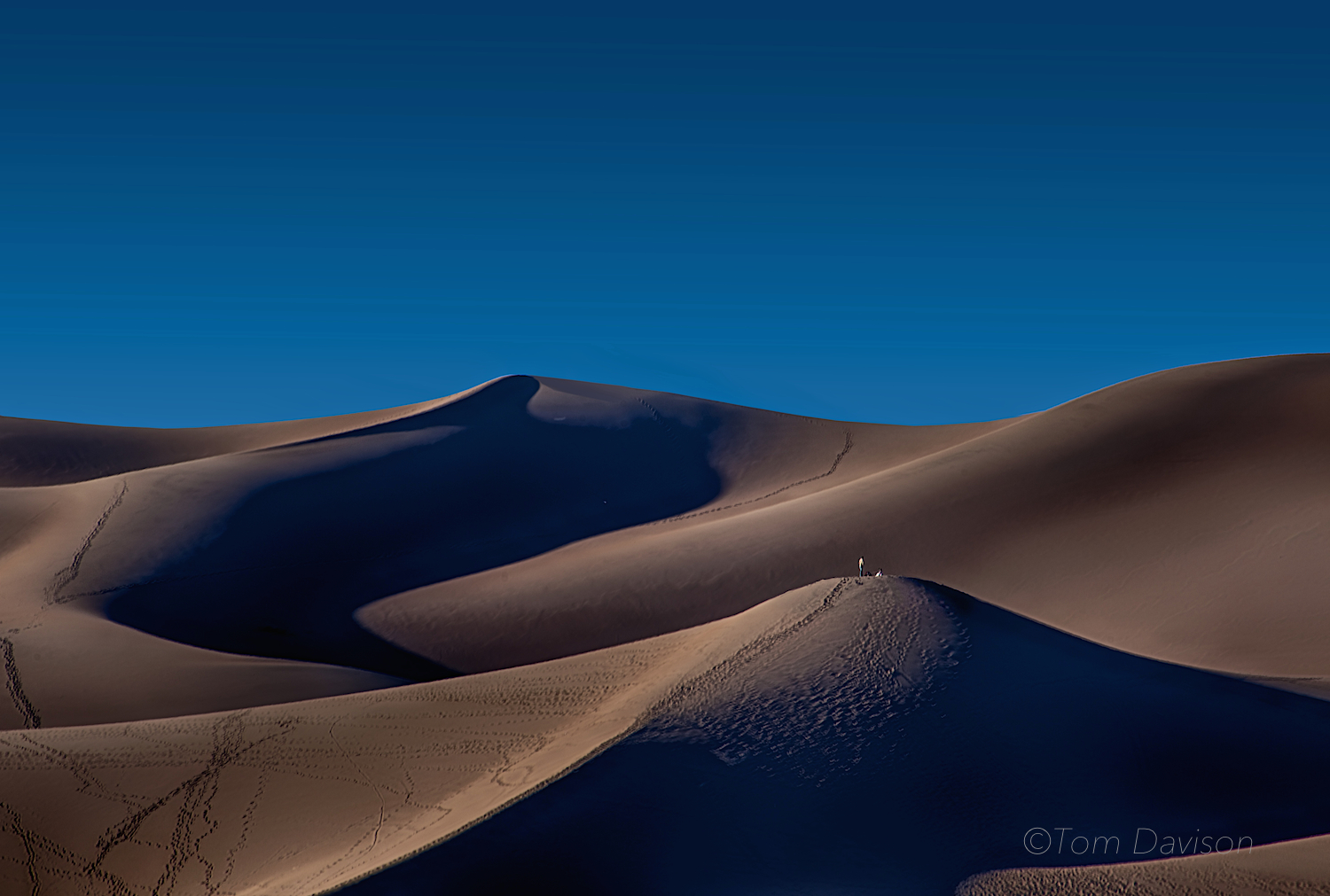 You may have noticed that the dunes are variously brown, sand or even purple. It all depends on the light and the white balance chosen. Since we shoot in RAW the color of the sand can be changed in post processing. But, it is the photographer's choice on how to represent the colors and sometimes Tom and I have different tastes on the matter.