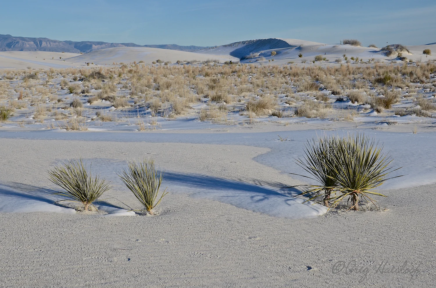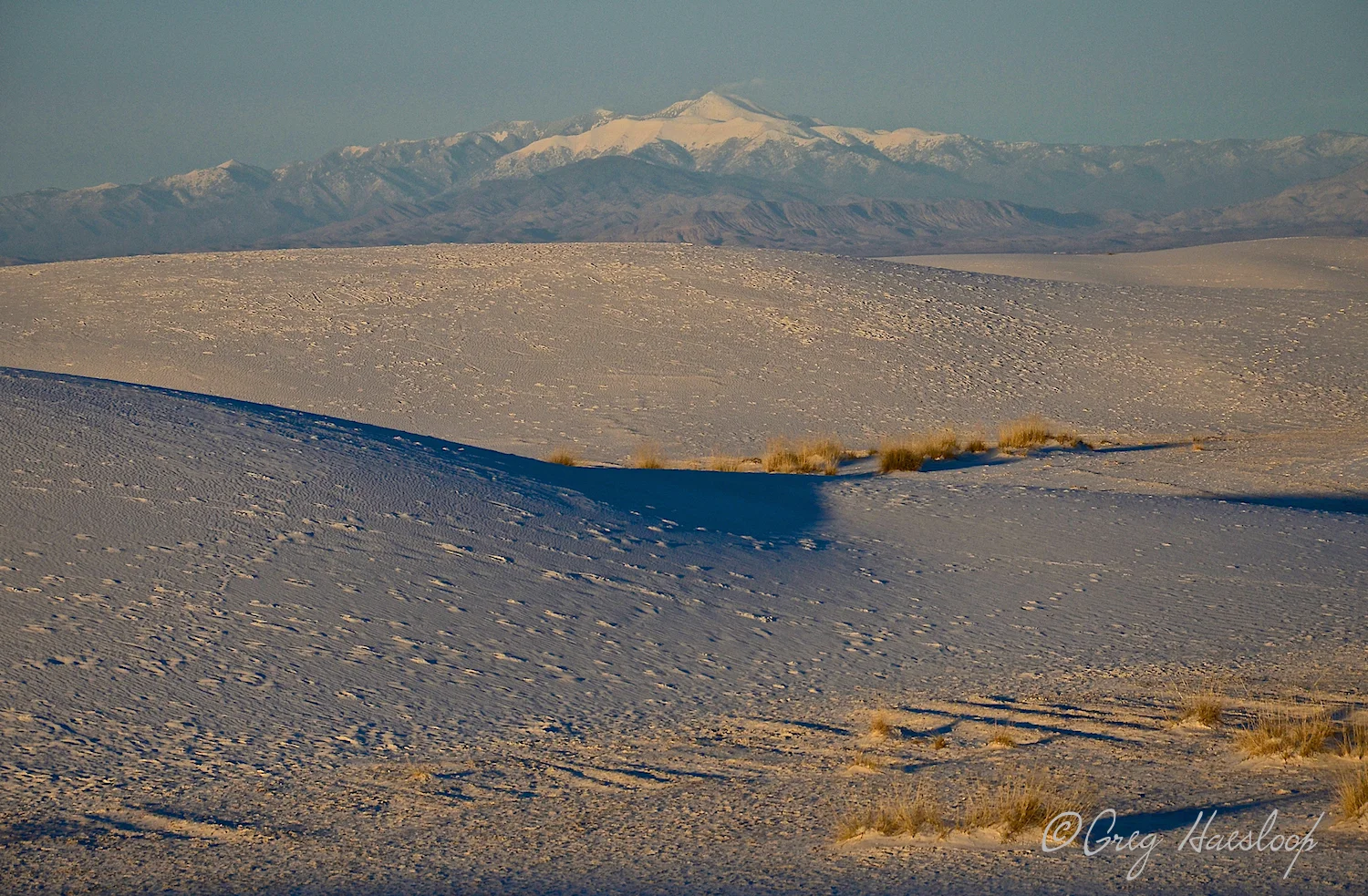 This was taken the first day we visited the monument. We chased the storm to Alamogordo. With just a very short time left to photograph the dunes . . . well this is not the way I expected them to look. They were a bit rain drenched. The mountain in the back is the Sacramento Mountain. It can often be seen from various elevations within the monument.