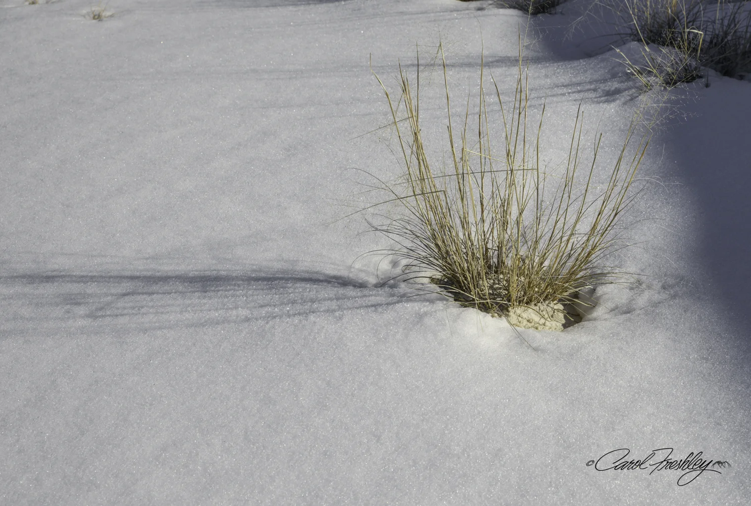 After an abbreviated shoot, we went on to Alamogordo for dinner and checking into White Sands Motel. An overnight strong winter storm was predicted and it was expected to last into the next day. Yeah! Snow as far south as Las Cruces! I dreamed of a White Sands winter wonderland. As photographers we know that we must be flexible about planning with Mother Nature. We arrived at the gate of the monument the next morning only to find it closed due to inclement weather!! Plan B took us to Oliver Lee State Park. Another night in Alamogordo in hopes . . . dashed when the monument was set to open up late in the day. We decided, wisely I believe, to call it a day and drive to Albuquerque. We returned two days later, expecting there to be little if any snow.