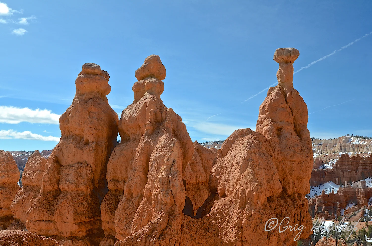 This is the third leg of Greg and Ann's journey in southern Utah. Bryce is my favorite in that area and they did it justice. Plus, they had snow!!! Some of the images tell us that they did a little hiking among hoodoos. That is something I have not done and am looking forward to it. Enjoy the images. Nice to know that Lefty was not left at home.