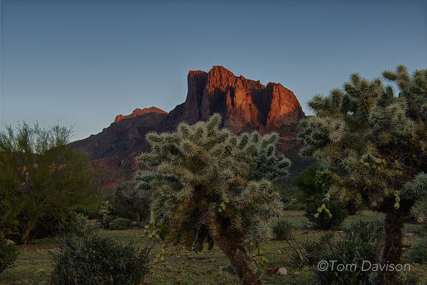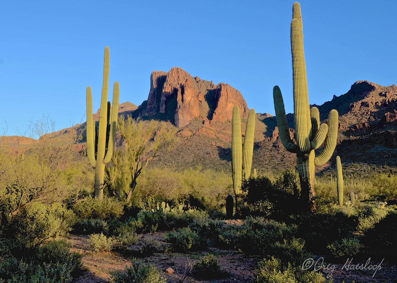 Tom, Rick, Greg and Barbara met at 5:15 and headed to the area just to the east of the Three Sisters, a prominent rock formation on the east side of the Superstition Mountain Range. The goal was to capture the earliest golden rays of dawn on the rocks. Enjoy!