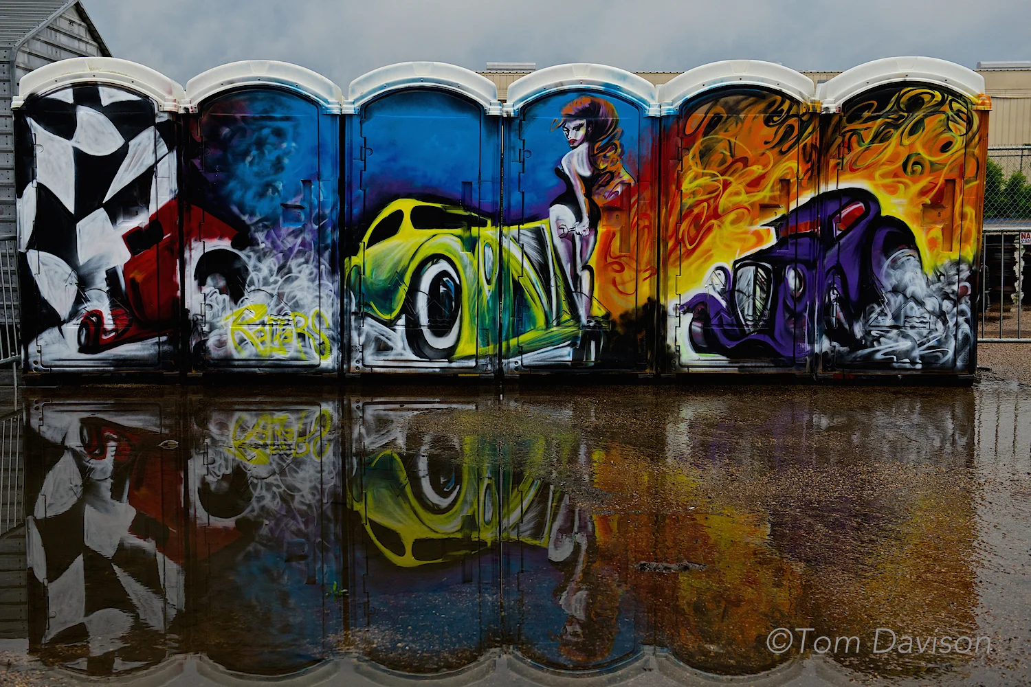 Haha! Well, Tom can't give me a good rat rod. Would I settle for potty graffiti? When this good, yes! Are those cars rat rods?
