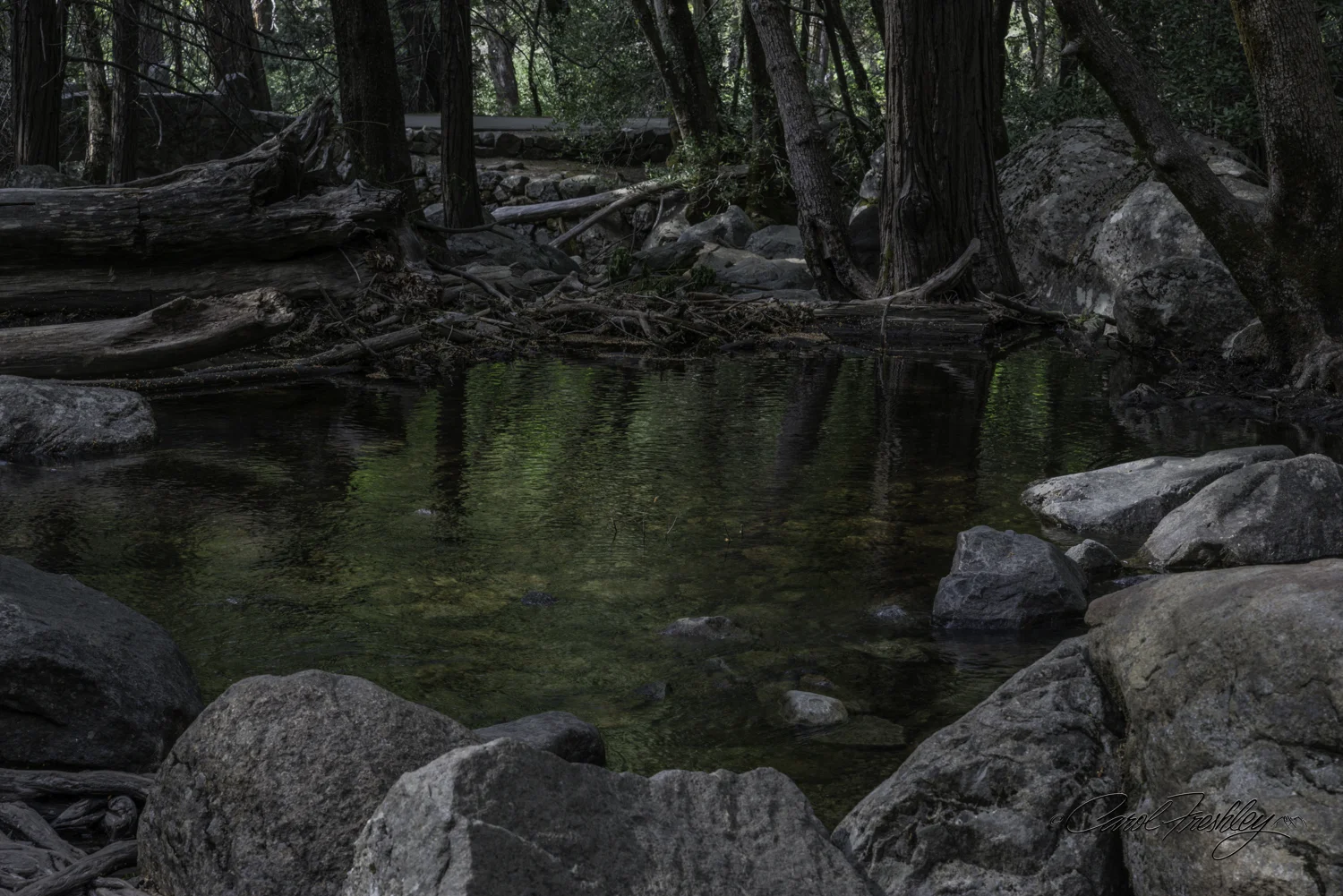 A story here. The evening we shot Bridalveil Tom saw a 'green pond' opportunity while walking back to our car. I was way ahead of him (imagine that). He lagged behind to get his shots of this pond.. When he got into the car and showed me what delayed him I was jealous. "You should have called me to share the opportunity. You are holding out on me!" In the end, he did not like his shots because they were out of focus. I insisted on returning to the pond the next day to get my turn at this shot. But, when we got there the pond was not green. It was a gorgeous mix of browns. Like Bridalveil, this pond requires light be reflected in just a certain way. A late winter storm was already developing so clouds were passing by and when the pond was in shadows of passing clouds in becomes darker, as it was late in the prior evening. I patiently waited, and waited, and waited . . . finally, one with enough shadows that you can see the green. But in this image you can also see a bit of brown where the sun streak crosses the water. I have my shot!