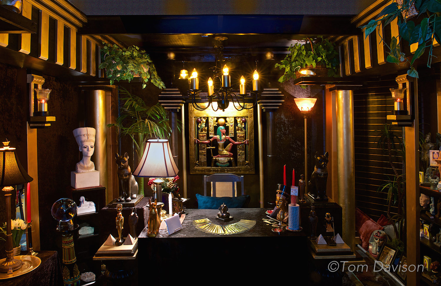 Tom met Jennifer about a year ago.  She has a shop in the same mall as his t-shirt shop. He likes the way the store looks and offered to photograph both her and the interior of the shop.  Jennifer is moving her shop to Paradise Mall this coming September 1st, to be called "Cleopatra's Temple of Egypt".  This is a cool photo trip!