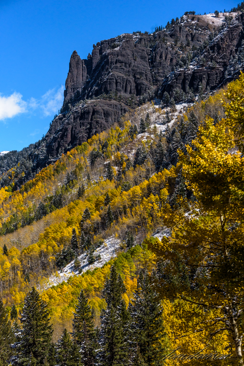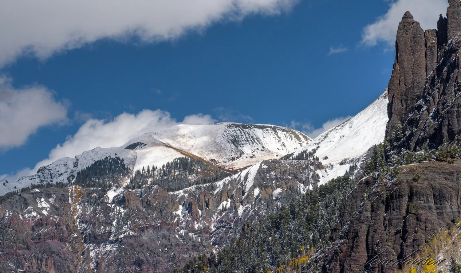 I wanted very much to see how the overnight snow had impacted the Snefels as viewed from Dallas Divide. Here it is! Taken October 5th.