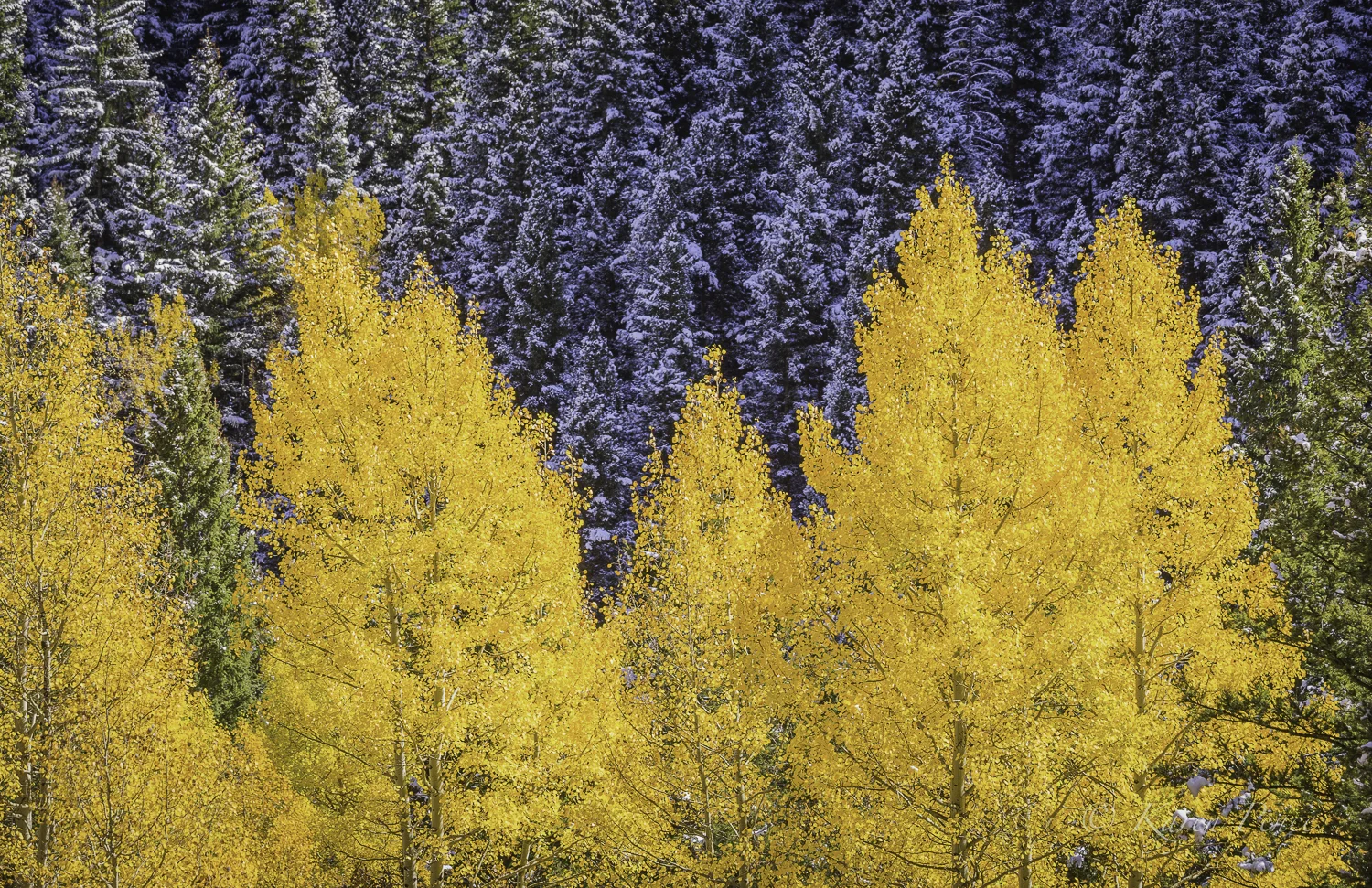 Nothing like a bit o' snow to go with yellow aspen leaves.