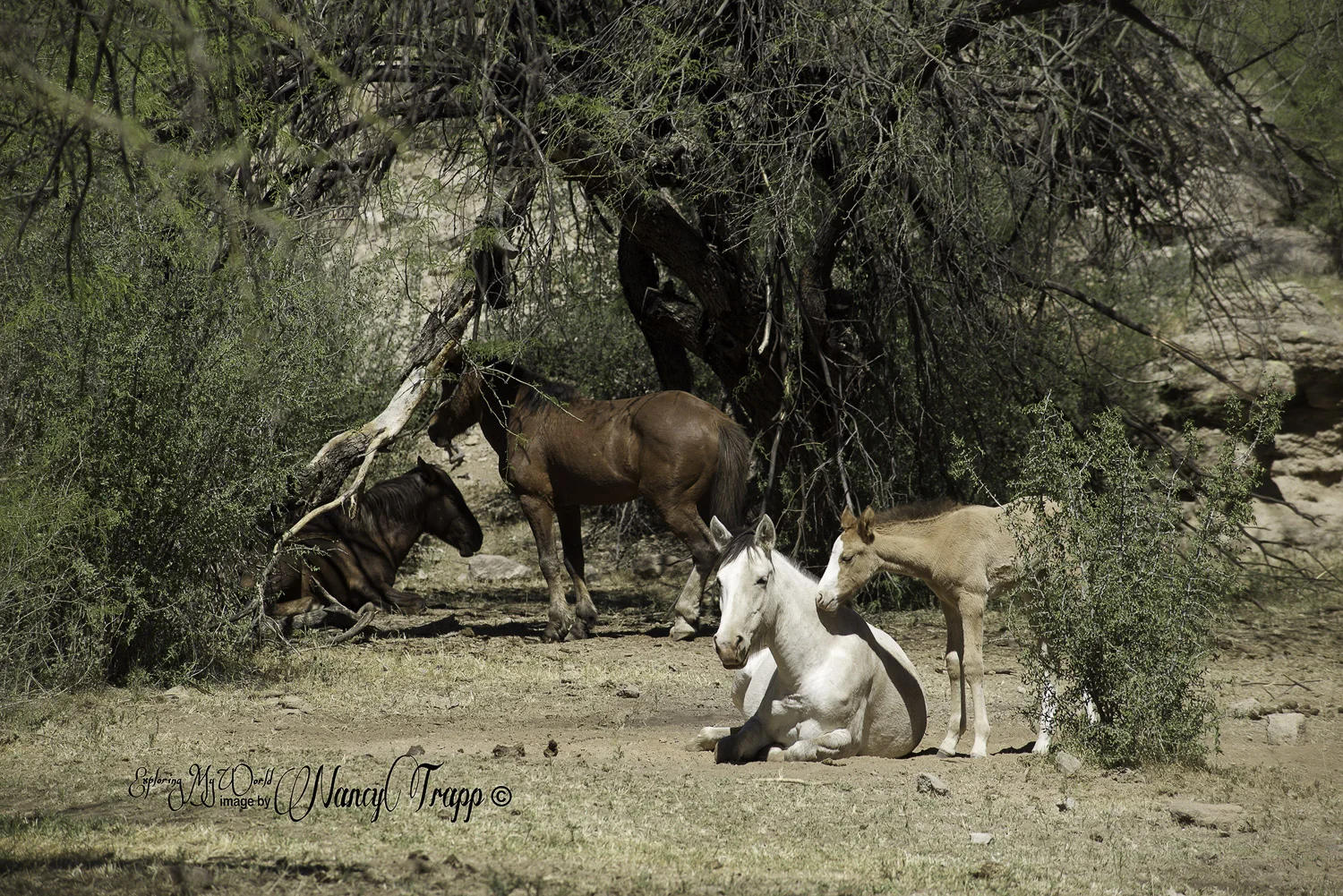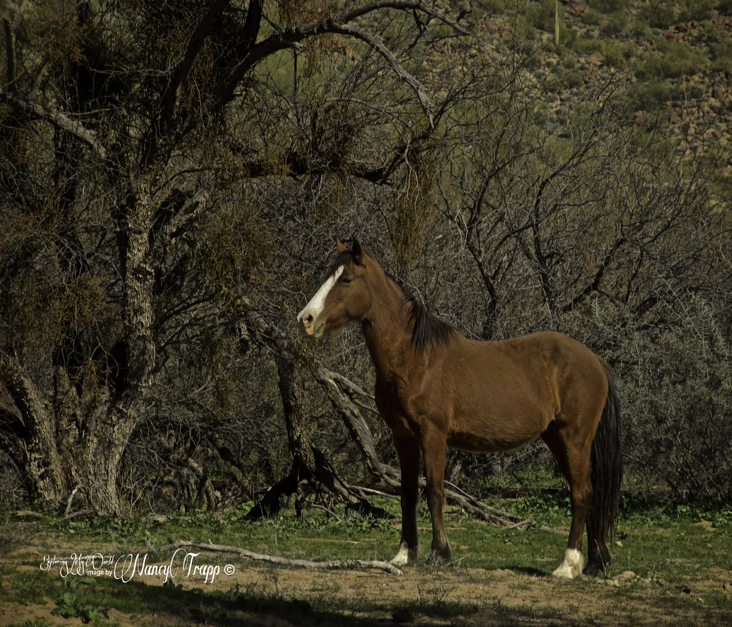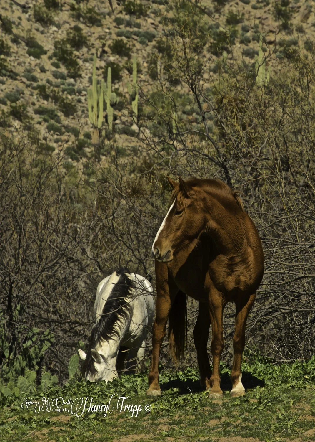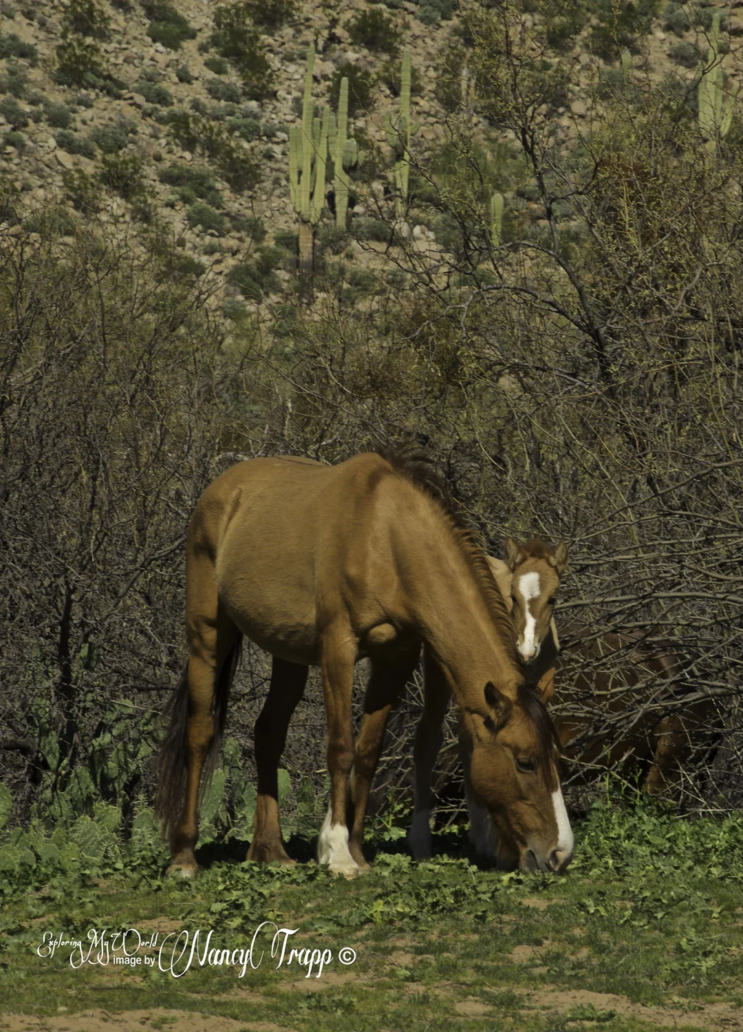 Nancy first went with some friends, not serious photographers, to the Salt River in Tonto National Park. She mentioned that you need a parking pass which can be obtained at Walgreen's or Fry's. Their first stop was Coon's Bluff and if you are lucky you can even see them in the water. The best stop of the day was the first right turn after Saguaro Lake. It was there that they found a herd of 22 wild horses and they put on quite a show for everyone. Nancy wrote that you can get very close to them! She used her favorite lens, her 80 to 200mm.