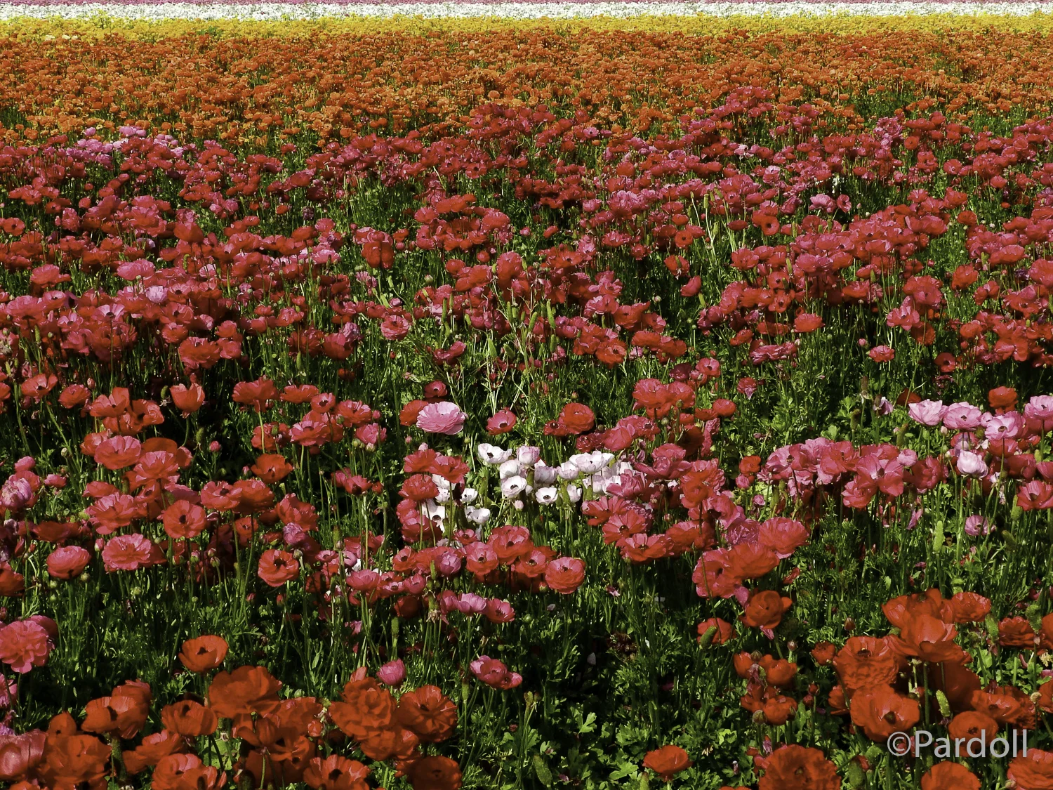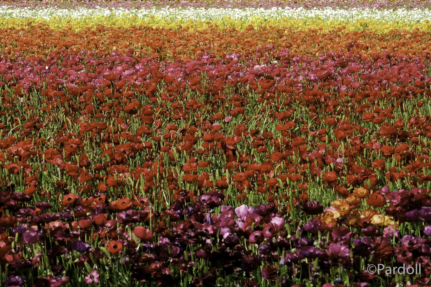 These are the shots from the Ranch at Carlsbad, CA. taken by both Jon and Phyllis. There are 50 acres of ranunculus, grown for cut flowers and seeds, but mainly for the tuberous roots, corms or rhizomes. They are on display from late March to Mothers day. The ranunculus is native to Asia Minor and is in the buttercup family (usually known as Persian Buttercup or Ranunculus Asiatic). The Ranch also has cymbidium orchids, master gardens, a rose garden, a sweet pea maze, and poinsettias. I was told that they did not keep track of who shot what, so I am giving credit collectively to 'Pardoll'. Plus, they like giving me challenges. They sent only 30 photos and want me to choose which ones to use. You already know what I am going to do! Exactly!!