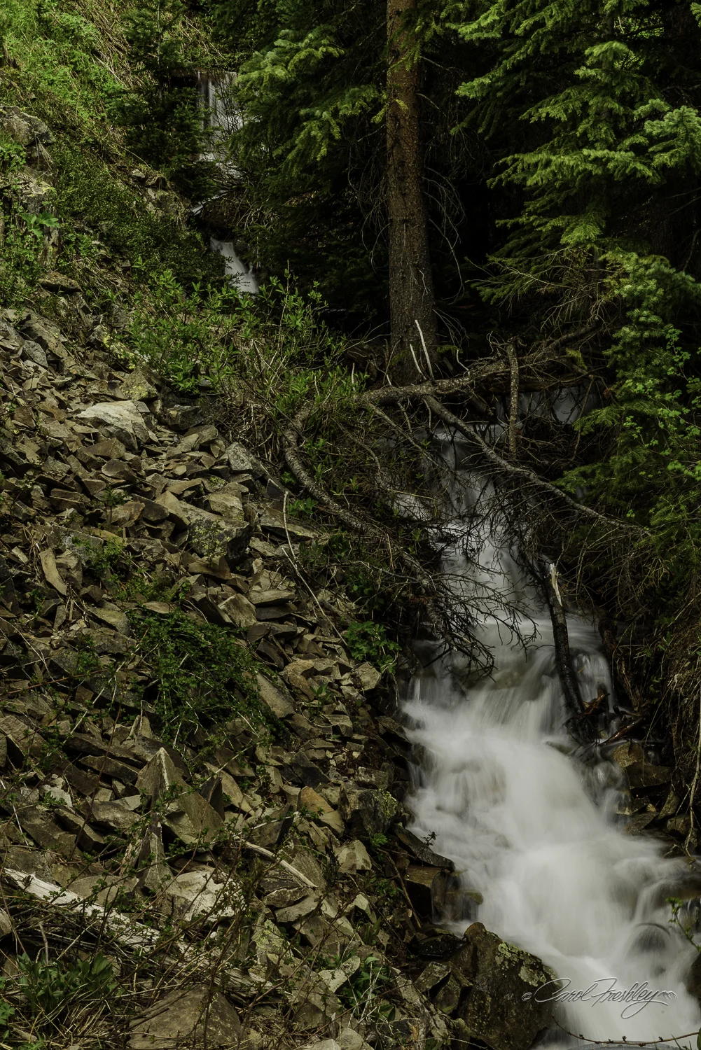 When we arrived at Judd Falls I had to re-adjust any expectations I had about this waterfall. First, it is more of a cascade down a steep rocky canyon. It sort of twists just like the switchbacks we are getting used to. Second, it is not readily accessible for photography. If you are feeling foolishly adventurous you can move out over some rocky ledges . . . . Tom said "NO!"