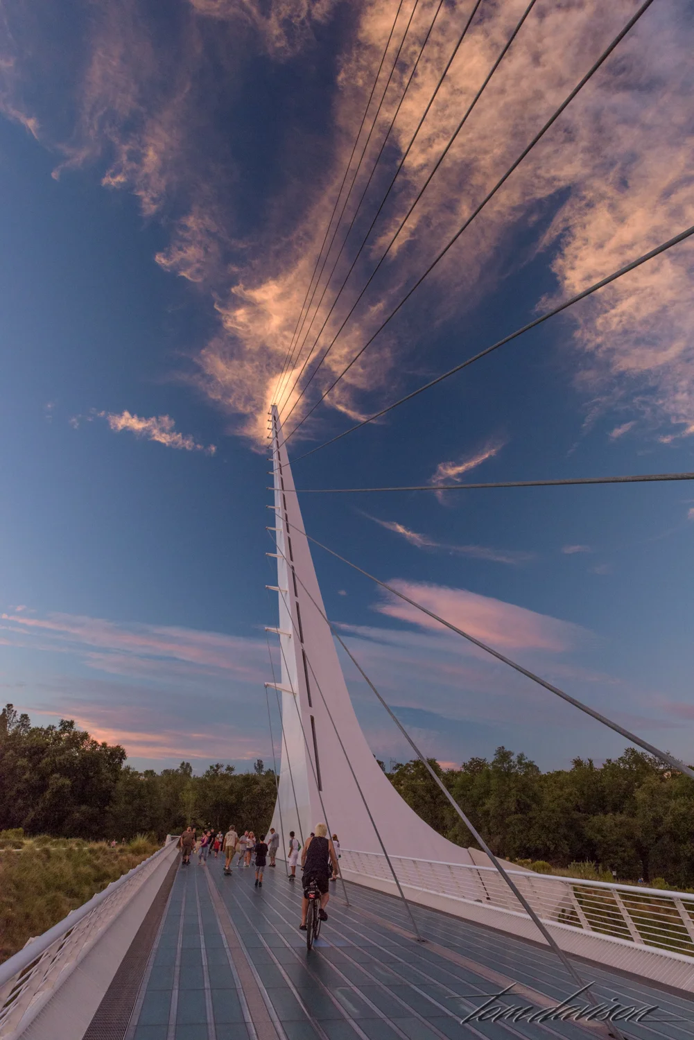 One of the key attractions in in Redding, CA is the Sundial Bridge. It links the north and south campuses of the Turtle Bay Exploration Park. Designed by Spanish architect, Santiago Calatrava, it appears to suspend weightlessly over the Sacramento River without ever touching the water below.