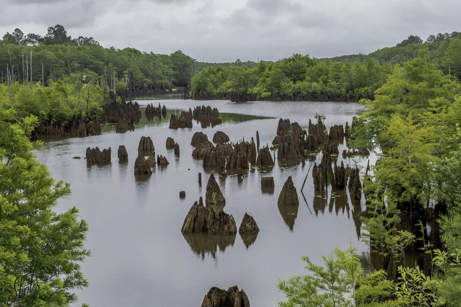 There are several theories about how these cypress trees died.  This is a low lying area and probably the most favored theory as that when the Chipola and Apalachicola Rivers joined the Apalachicola River brought in a lot of sand and killed the…