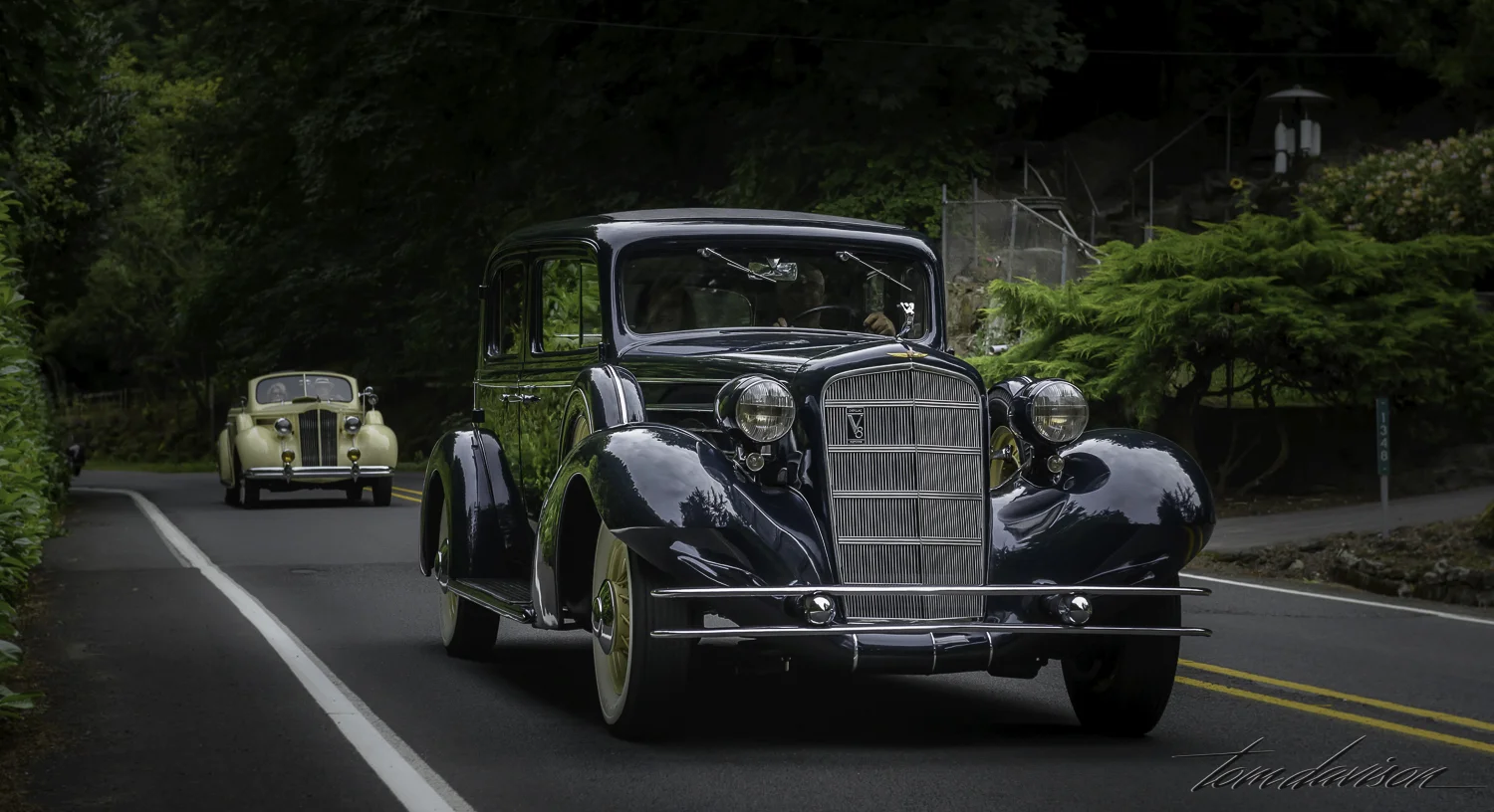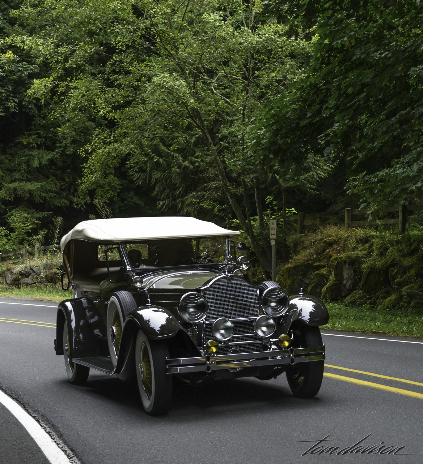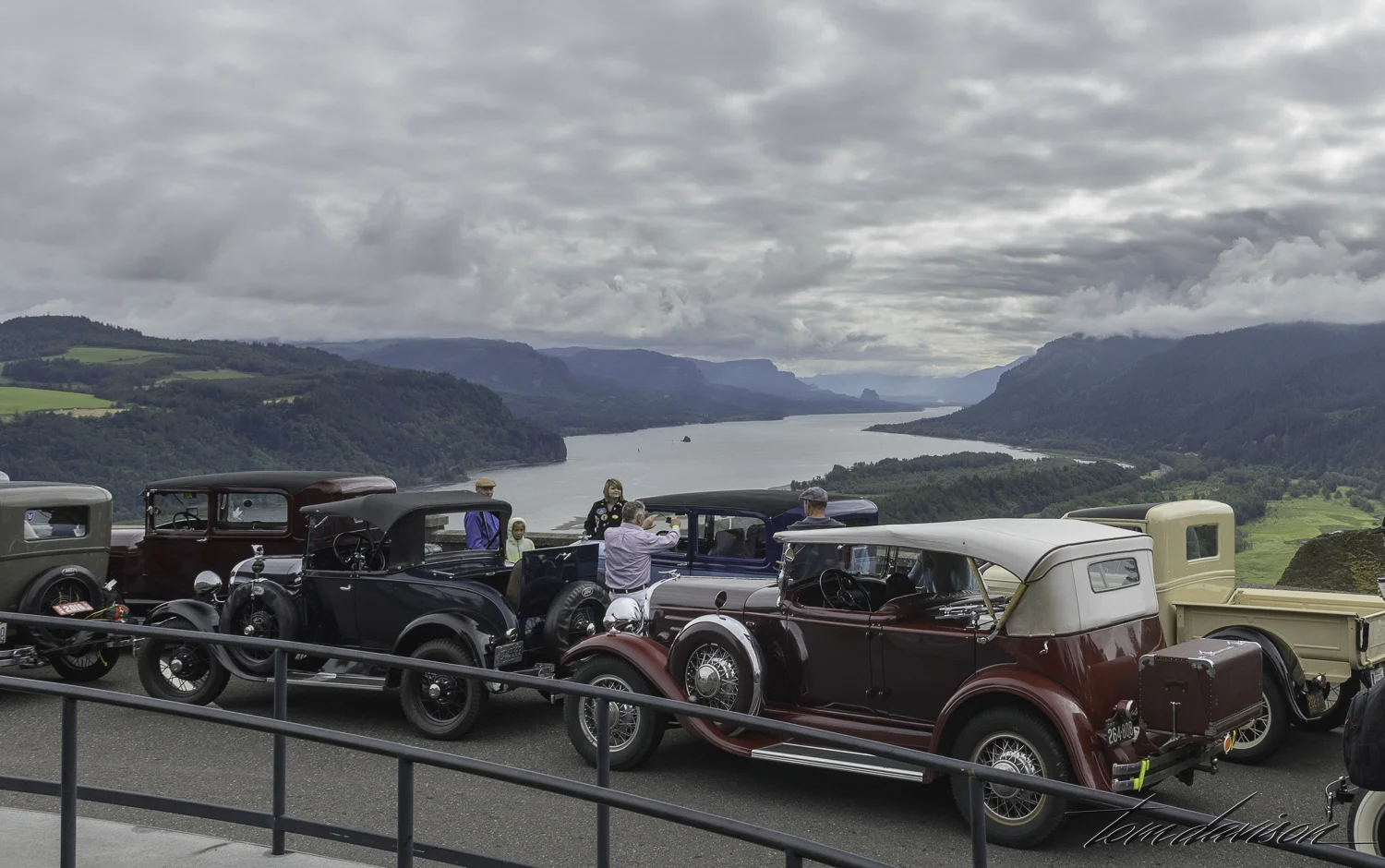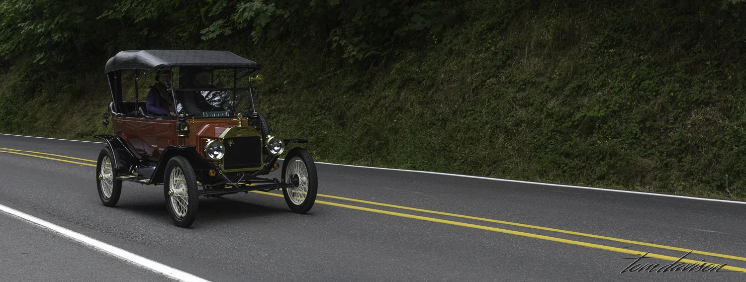 The invitation to antique car owners sent out by The Friends of the Historic Columbia River Highway noted that to participate, vehicles must be model year 1949 or older and be 'true' antiques (meaning no hot rods or restore rods).  Proper period attire was encouraged. The route took participants from Troutdale to The Dalles along old Highway 30.