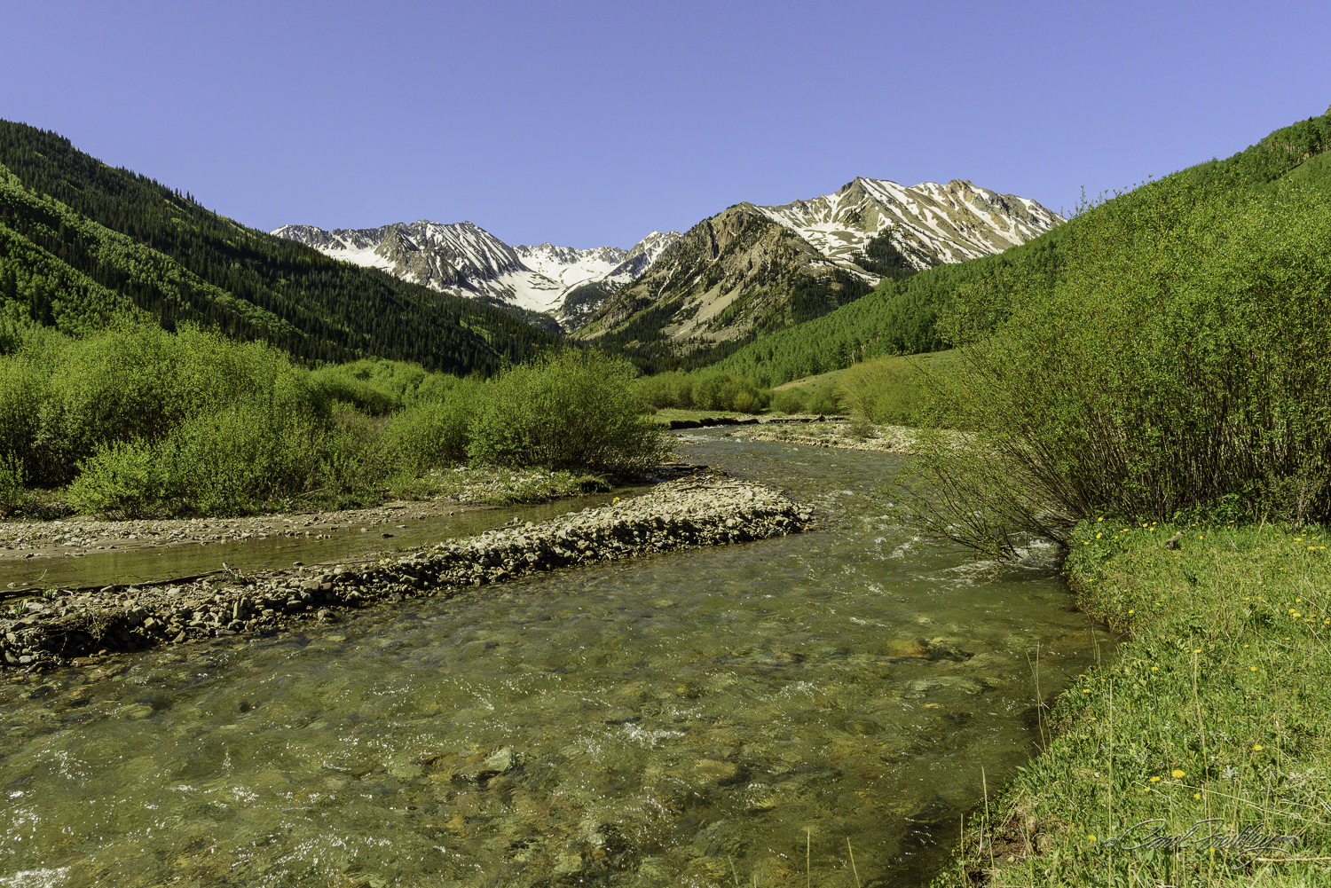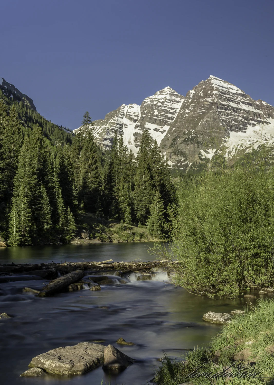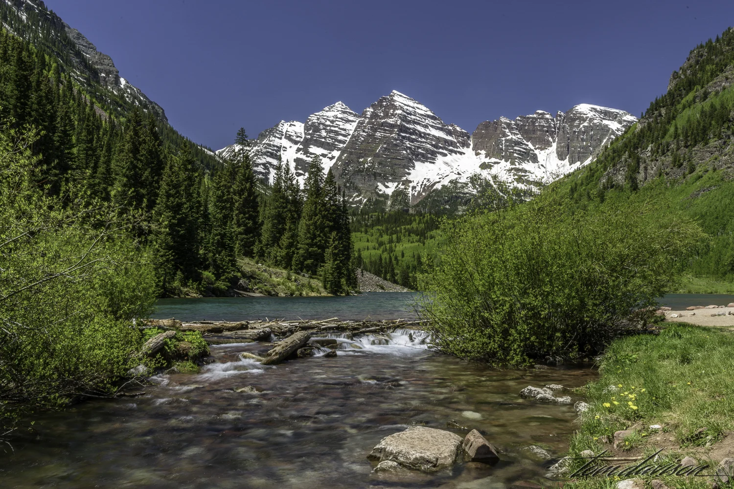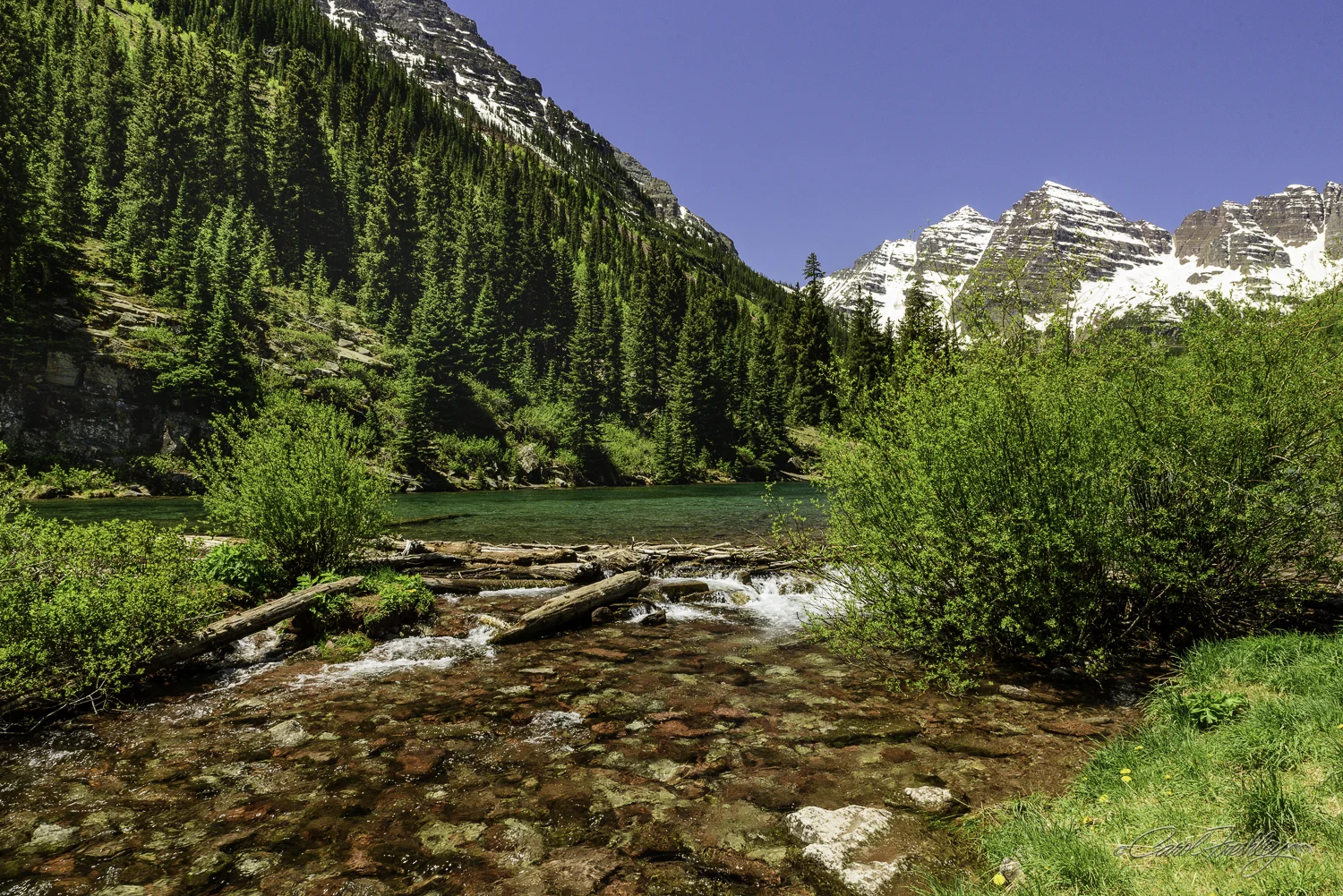 Wow! Arriving on the scene I was encouraged by the clear water coming out of the lake. That emerald water in Maroon Lake caused me to hasten my pace a bit