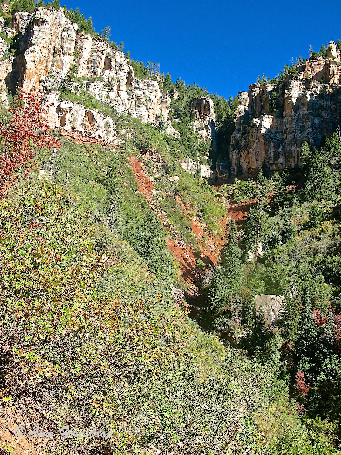 John took a camping trip to the North Rim with his son Scott to do some photography and catch up.  The weather was cool at night with the first night getting down to 20 degrees!!  He reports that the fall colors were just starting to fade but that there were still lots of opportunities to see fall color on the canyon walls as well as the surrounding areas.  There were no clouds this time of year but good sunrise and sunset lighting on the canyon walls.  I noticed a full moon in a couple of his photographs!!