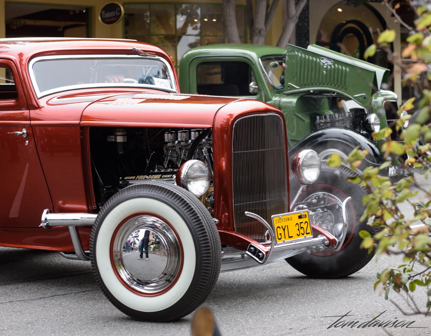 This is CAR week in Carmel. The most prestigious of the events is to be held this coming Sunday with exceptional cars parked on the grass at the 18th hole of the Pebble Beach Golf Club. Leading up to that final day are lots of other events that showcase these special cars. This post covers the cars that Tom photographed along the downtown streets of Carmel where a smaller version of the Concours is held.