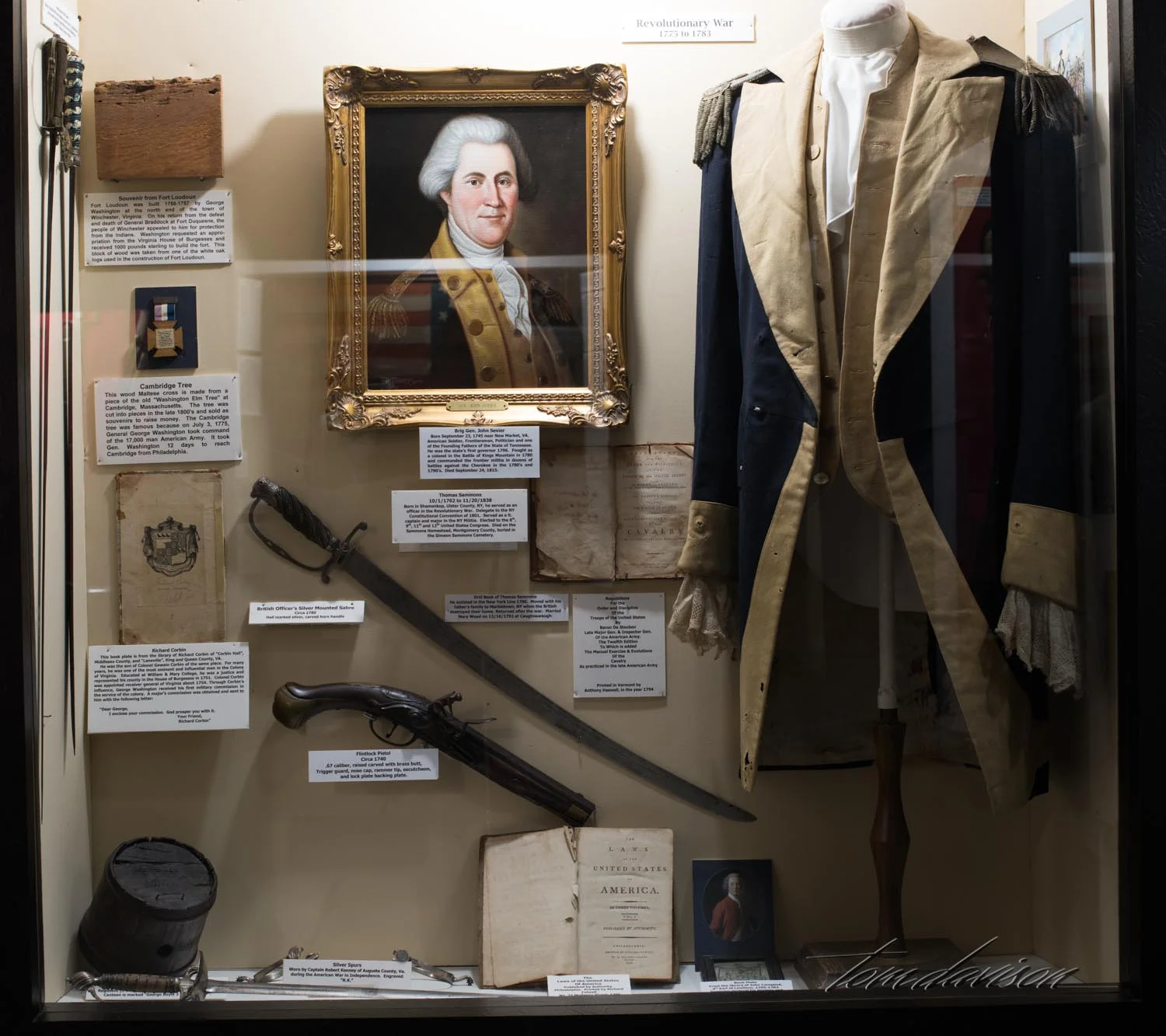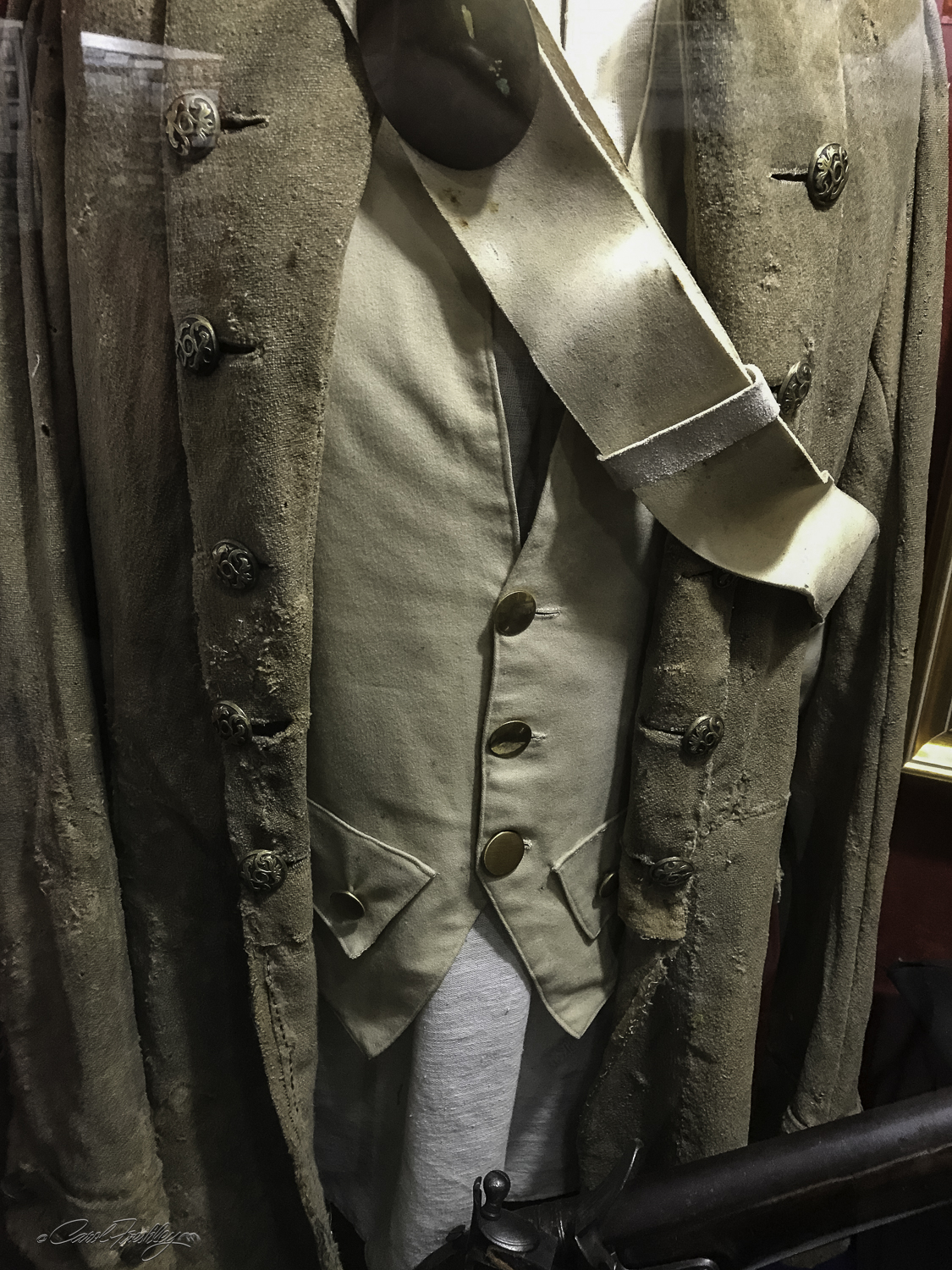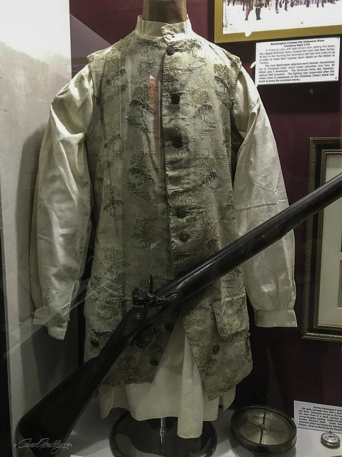 This is the Revolutionary War Uniform Coat of John Dunwoody, born in 1737. He was a teacher in Pennsylvania before joining the war. He wore this uniform while serving with General Washington during the Delaware River crossing on December 25, 1776, during the Battle of Trenton on December 26, 1776 and in the Battle of Brandywine on September 11, 1777 and other battles. He married Susan Crestwell and was the father of 8 children. One of his great-great-great grandaughters married Theodore Roosevelt.