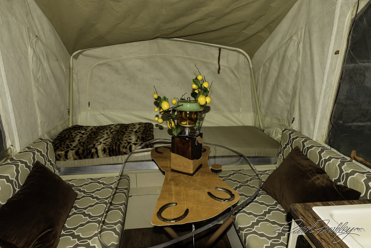 A fixed-up! Sort of a camper honeymoon suite with horseshoes for luck!