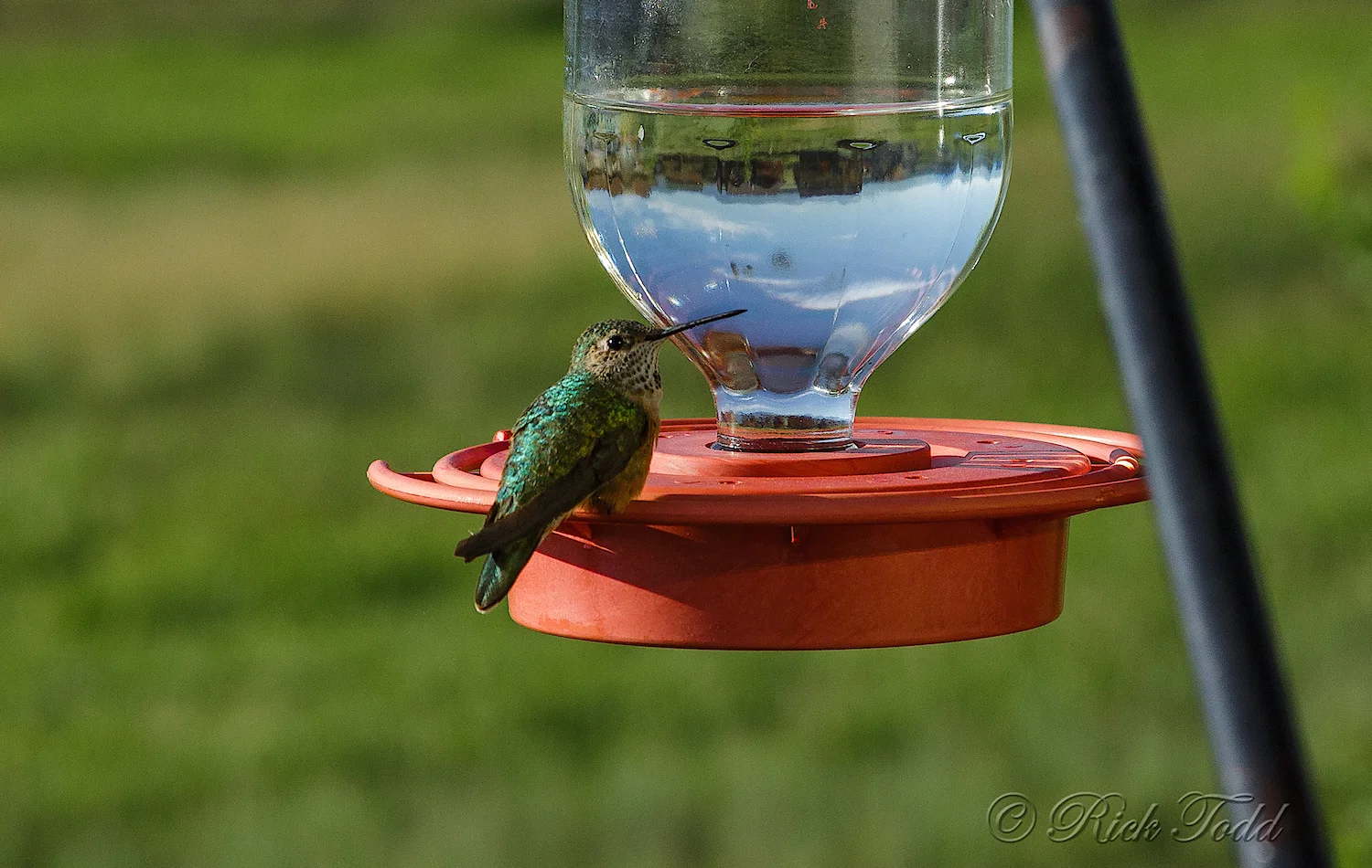 Rick wrote that there was a hummingbirds frenzy at this feeder. Lucky one sat still just long enough for a good shot.