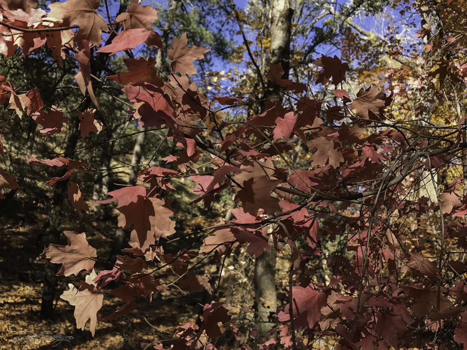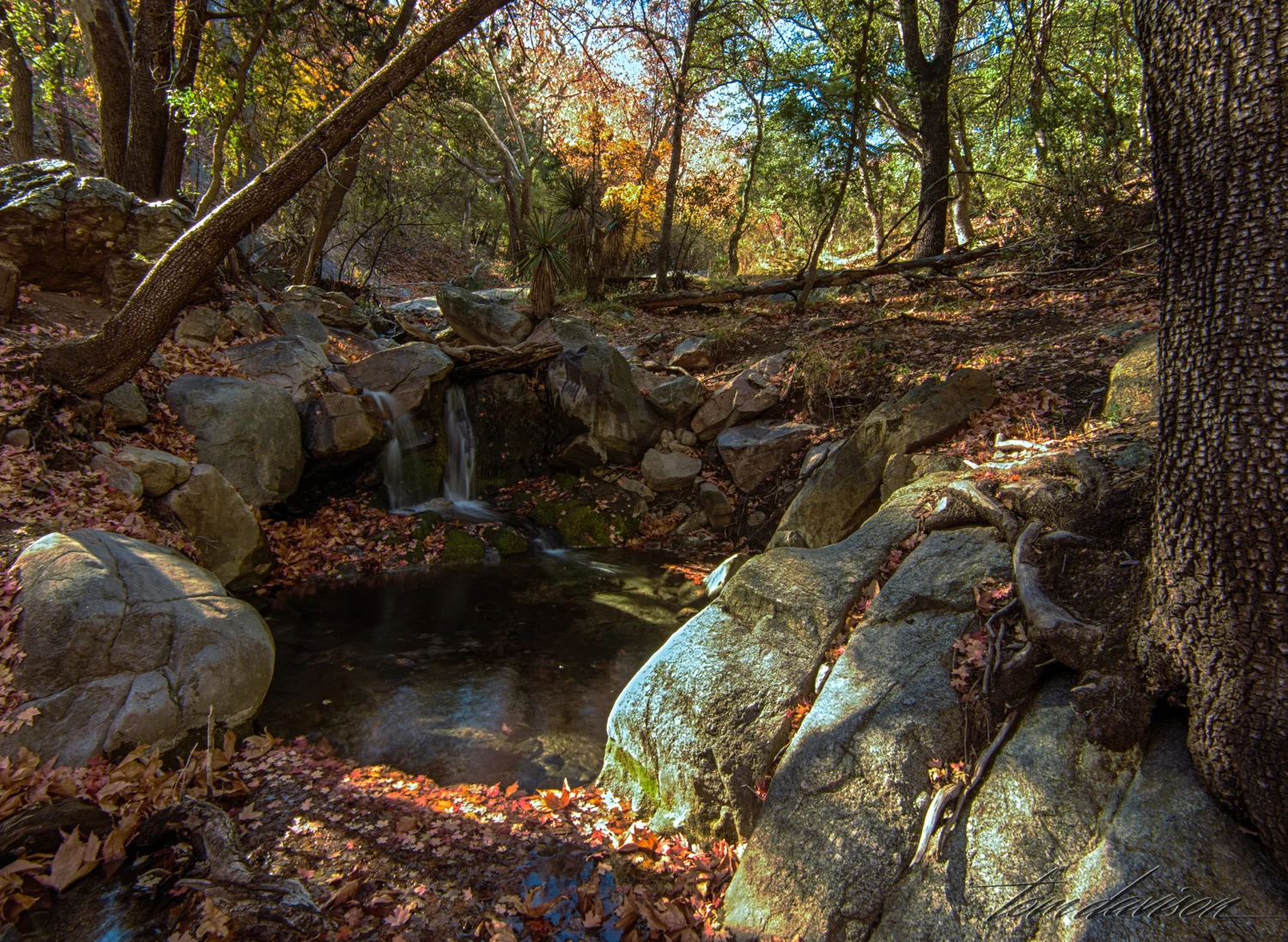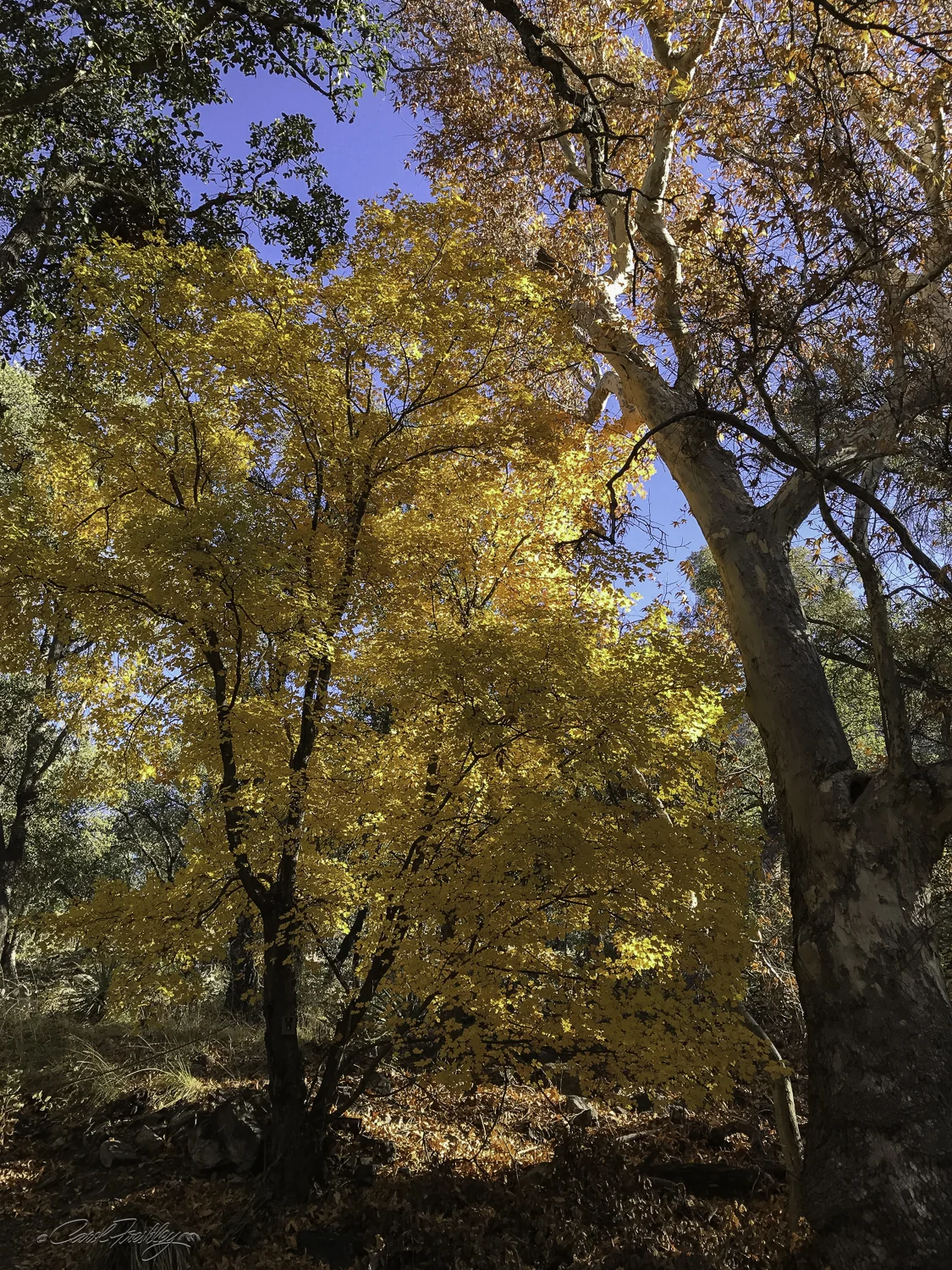 Ramsey Canyon is referred to as the 'hummingbird capital of the world'. Its tall canyon walls and presence of Ramsey Creek keep it cooler than the surrounding desert and an ideal place for wildlife, especially birds. There are 15 different varieties of hummingbirds that can be found here. Ramsey Canyon is part of The Nature Conservancy’s international conservation program cooperates with several agencies to both preserve and better understand fire management, stream restoration, and protection of rare species. When we arrived, just as the Information Center opened, it was very cold! We were hoping for some fall color and were surprised at just how brilliant some of the trees were. It was probably just past 'peak' but we took it all in! For the birders in our group, we were told that two Trogon males had been spotted in the area. We, of course did not see them.