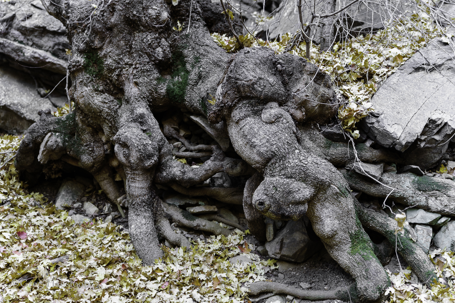 Haha! My neck curved like this tree trunk as I tried to turn it right side down . . . or up!