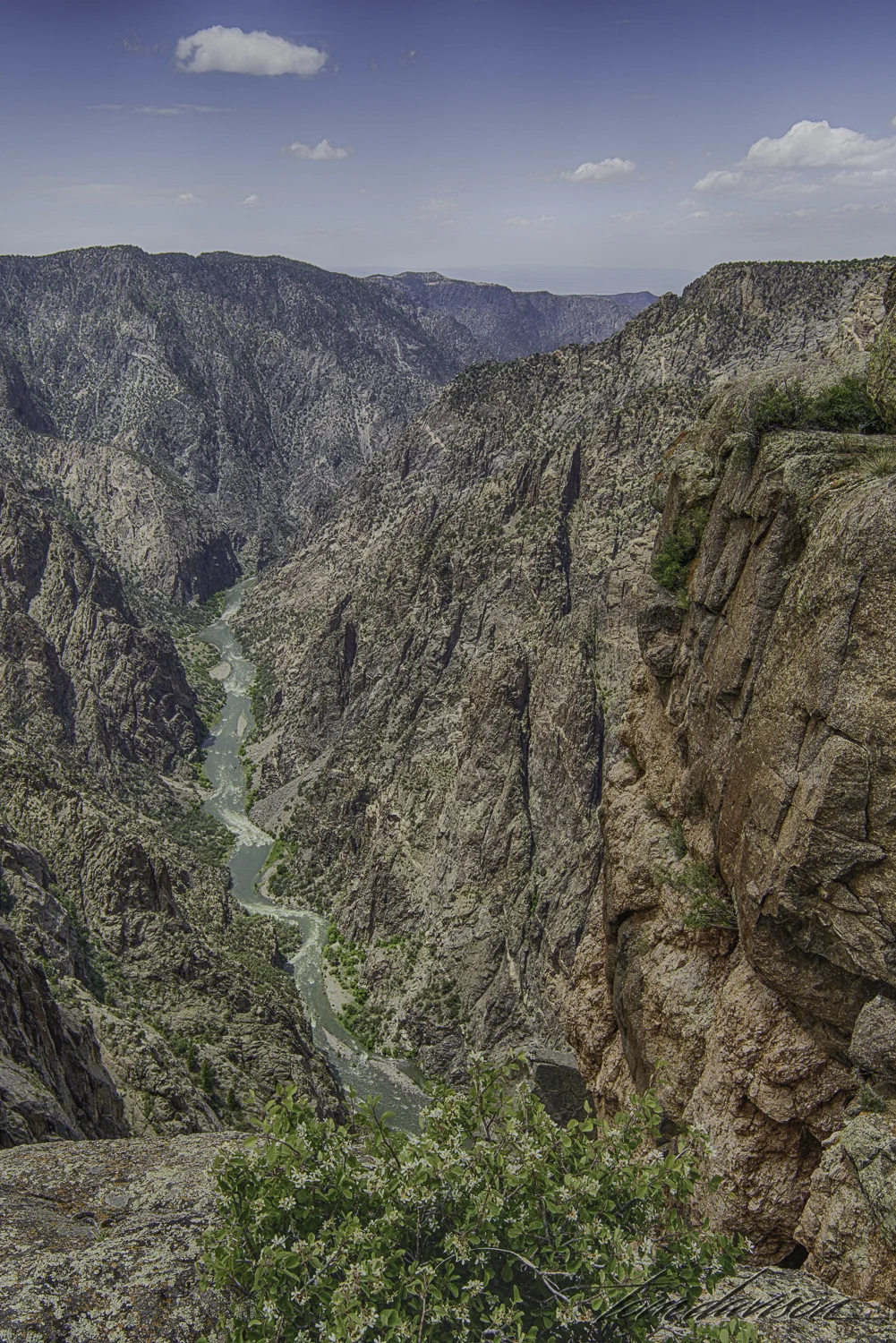 Taken at the Chasm Overlook. Difficult to capture just how 'far down' that river is!! At some point in the canyon we read that if the Empire State Building were placed in the canyon it would reach just slightly over half way to the top! I believe that may have been at Chasm Overlook. Can you see how narrow the canyon is at this point? Also, along here the Gunnison River is almost all whitewater rapids.