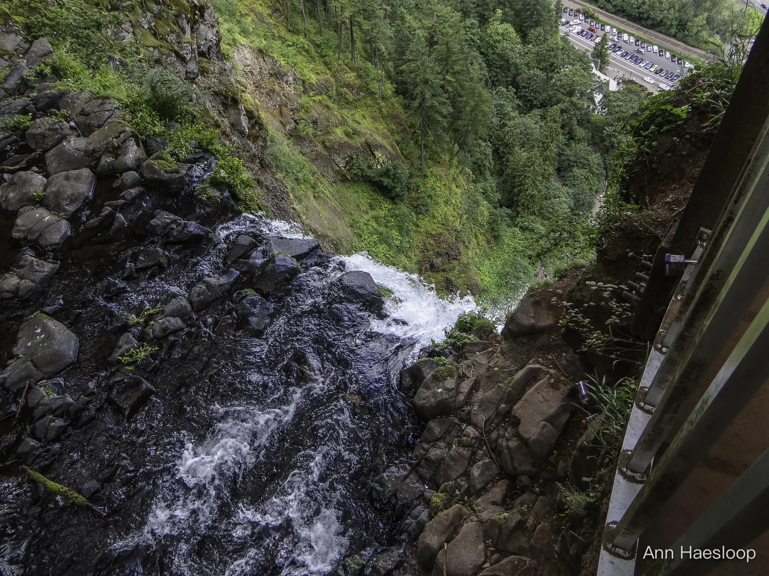 Top of Multnomah Falls. Ann, our superb hiker, gives us a very different perspective of the falls!