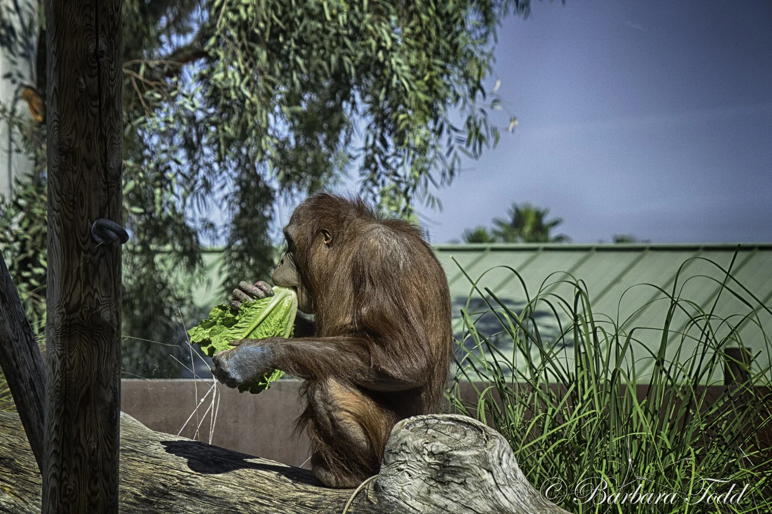 My grandson had early dismissal from school so Tom and I took him to the zoo.  We were treated by a great display of activity by Jiwa, the baby orangutan.  He is now over one year old and is really setting out on his own.  When Tom finally pulled away photographing Jiwa he grabbed a good shot of a pelican.