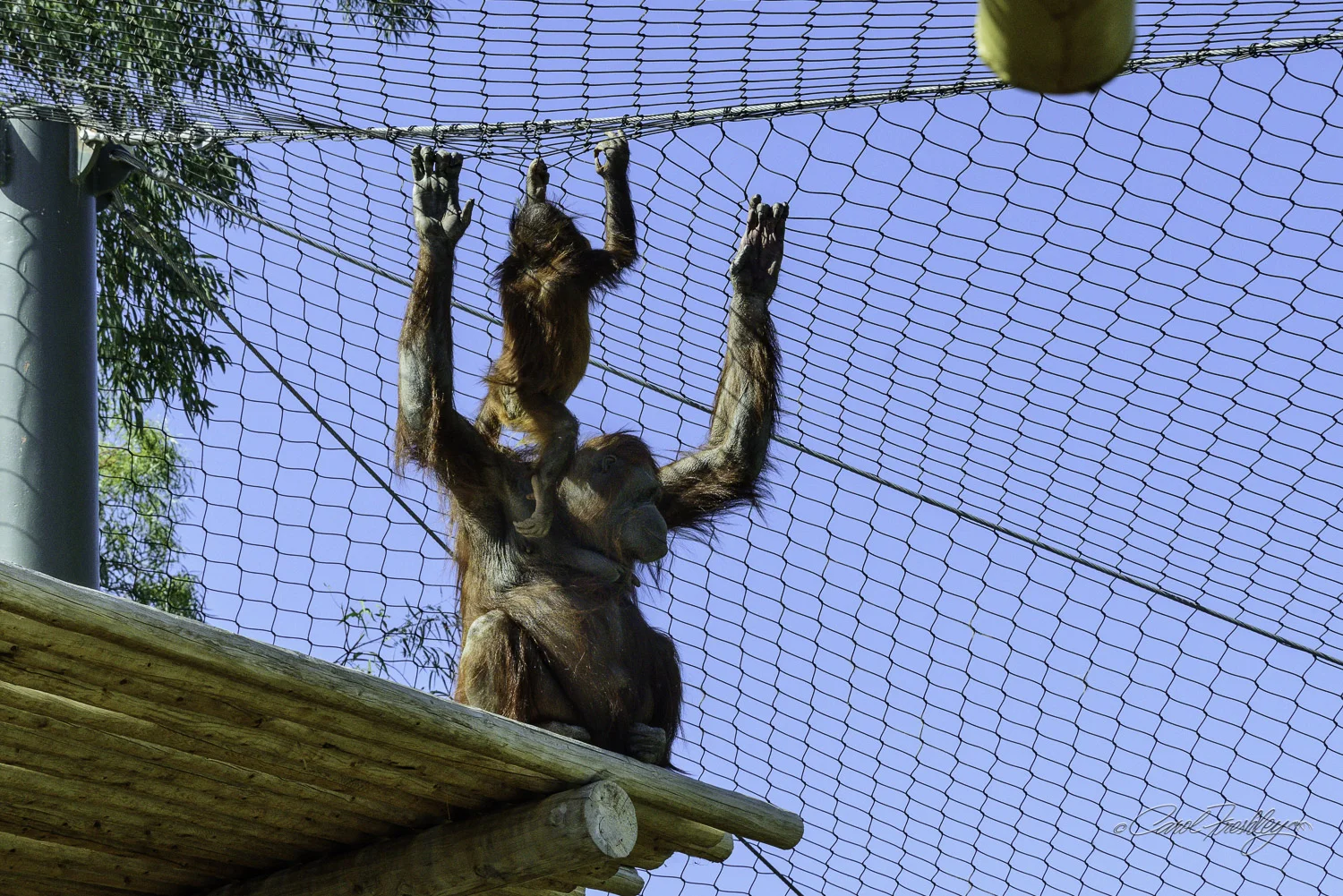 Phyllis, Barbara, Jon and Rick spent some quality time at the Phoenix Zoo. They share their photos with the rest of us.  I have put all the photos of Bess and her family together.  Bess was born in 1979 and is the mother of Kasih, born in 2006 and Jiwa, born last September.  Michael, born in 1987, is the father of both offspring.  In just the last week or so, Kasih has been allowed to join her mother and baby brother, Jiwa.  The interactions between family members is quite remarkable.