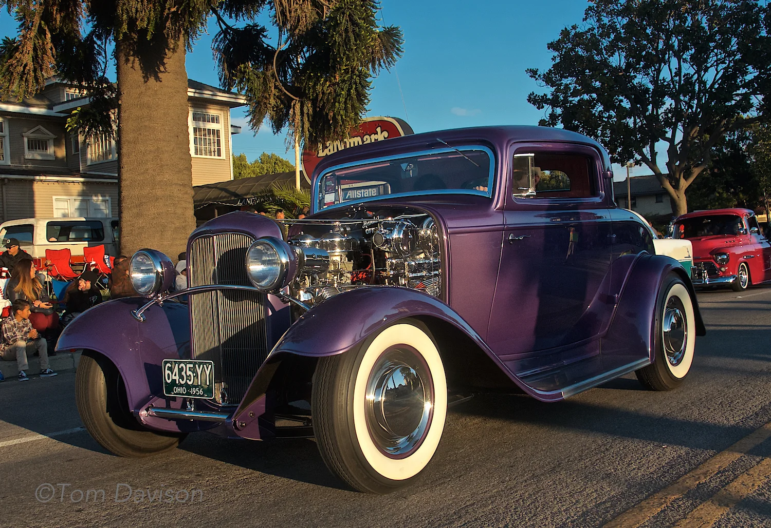 The car show took place in Santa Maria a smaller town in the Paso Robles wine country. There were about 900 old restored cars that swamped the lovely community. On Thursday evening the town closes off about 12 blocks of Broadway, the main street. The citizens grab their chairs and set up to watch a free show of these well refurbished old cars. Tom reported that it got a bit crazy with many more people than he expected. His usual shooting style was challenged be the crowd, the ever decreasing light and moving cars instead of the usual stationary cars he is accustomed to photograph. The images tell a story, a story of love that people, young and old, have of these older cars.