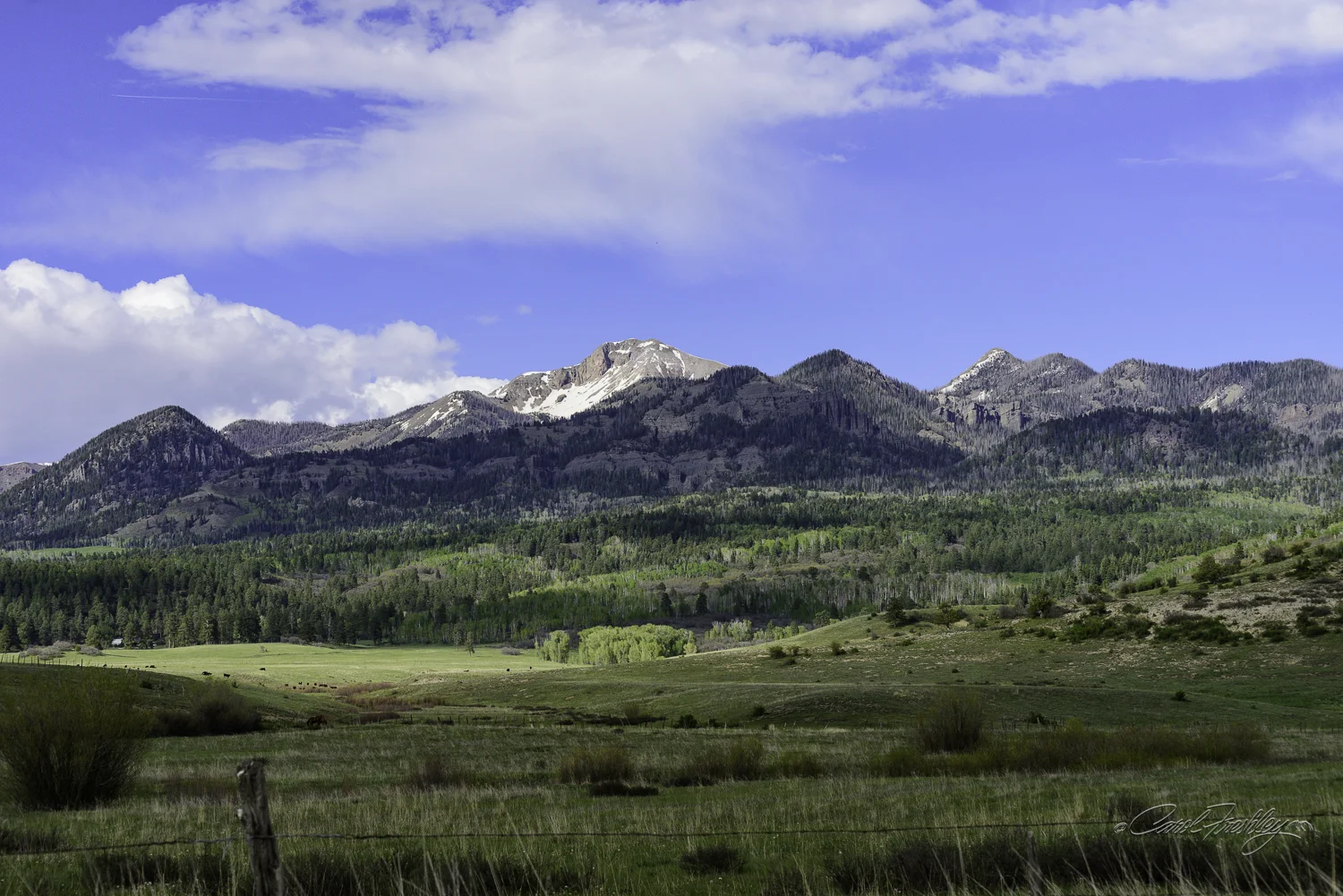 We still had time to drive up to Wolf Creek Pass and see how road would be for Mellie as we continued on to South Fork. It would be fine! No sharp switchbacks (well, maybe one). The lanes were wide and there were pullouts to allow faster drivers to pass us. On the way we spotted one pullout that looked interesting. We thought the site had good sunrise potential so we returned the next morning just as the sun was coming up over the eastern edge of the valley.