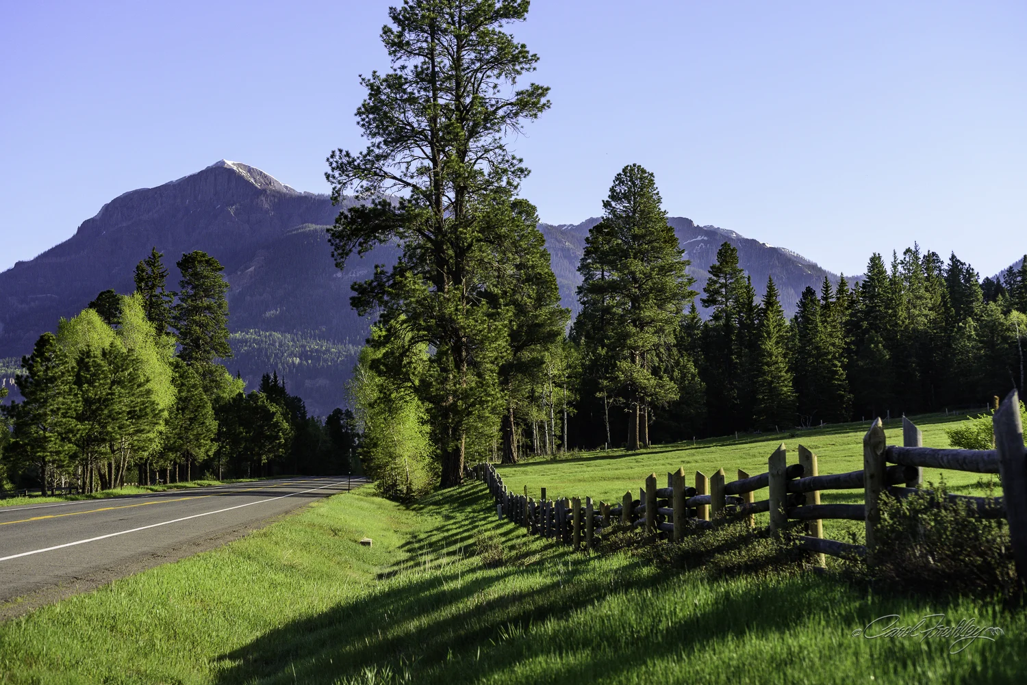 A typical scene on the way to Treasure Falls. This is the land of green, wide open spaces with log fences and snow caps on distant mountains. It first it felt like we needed to de-saturate the greens!! They were just too bright! Oh, to be a desert dweller in a green land!!!