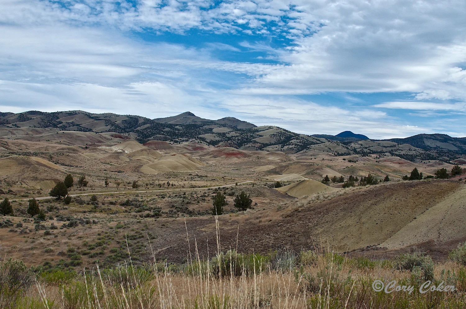 Cory wrote: "Painted Hills are listed as one of the Seven Wonders of Central Oregon. They are named after the colorful layers of the hills corresponding to various eras, formed when the area was an ancient river floodplain. The black soil is lignite which is vegetative matter that grew alongside the floodplain. The grey color is mudstone, siltstone and shale. The red coloring is laterite soil formed by floodplain deposits when the area was warm and humid. An abundance of fossil remains of early horses, camels and rhinoceroses in the area make the Painted Hills area particularly important to vertebrate paleontologists. The Painted Hills are protected and have an abundance of short trails for viewing. Walking on the Hills is prohibited."