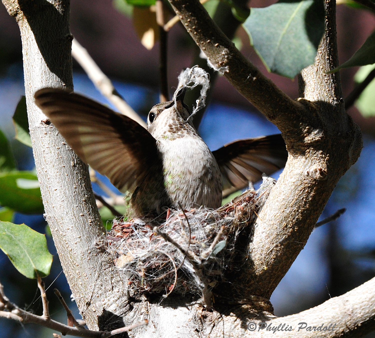 Hummer building a nest.