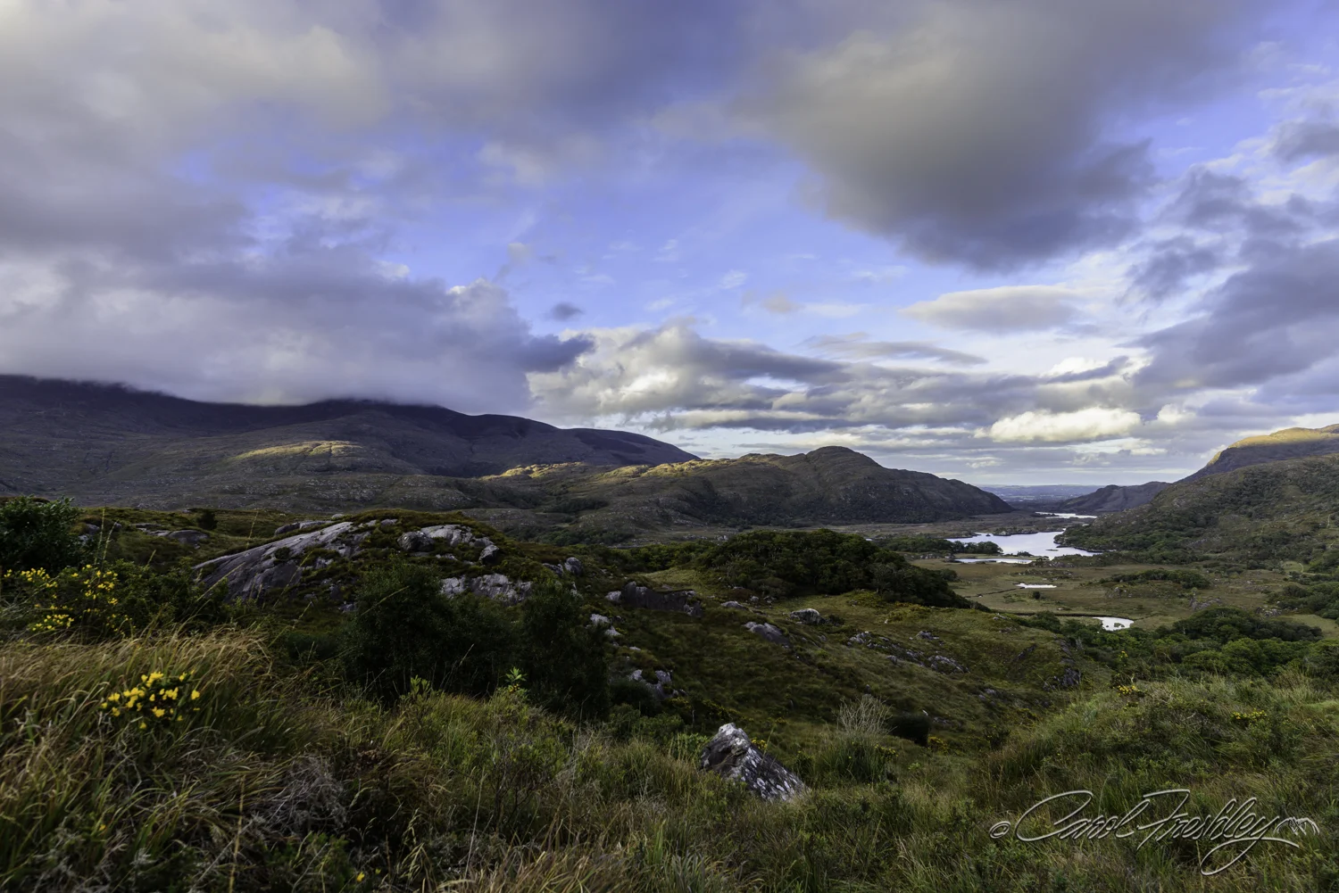 Ah, the lakes of Killarney. Great place to spend a late afternoon and then watch the sun go down. Well, sort of! The clouds moved in and cut off a spectacular colored sunset. However, the colors were barely missed by those of us high up on a ridge overlooking the lake below.