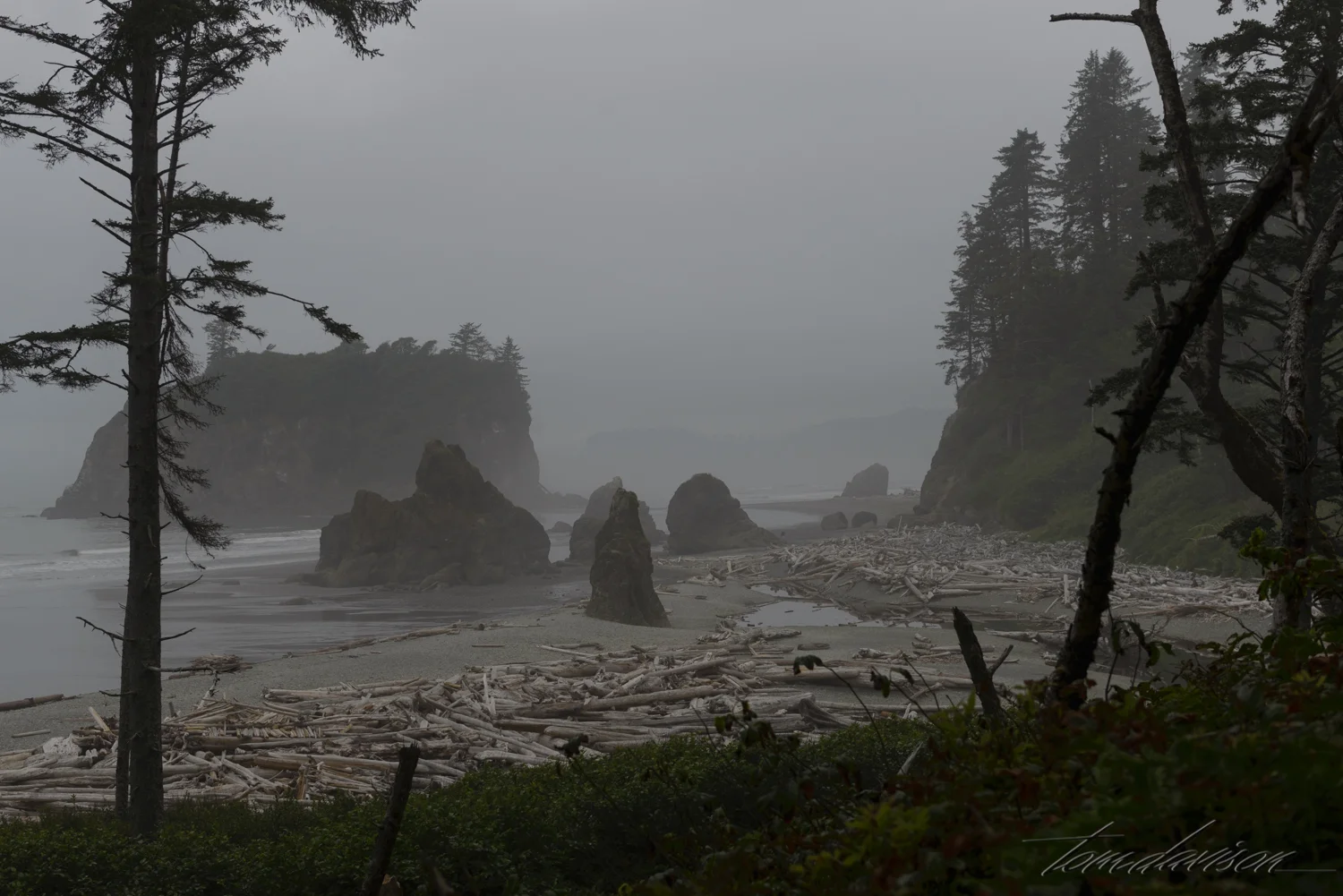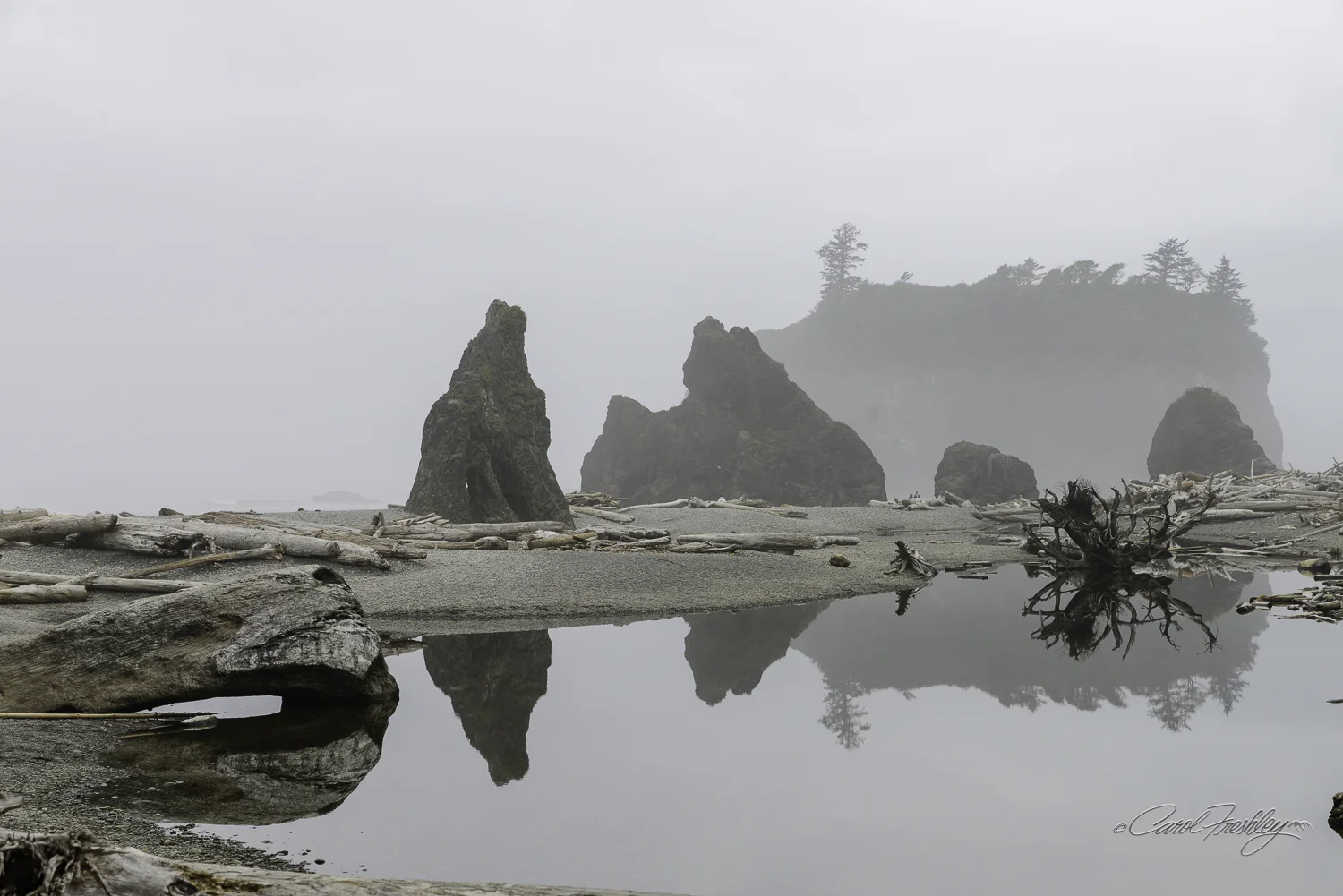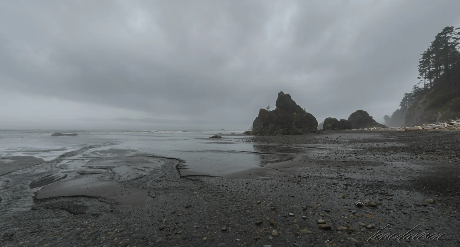 As we returned to the top of the ridge we looked back at the beach. Was it possible the fog was clearing? We decided not to return to the beach but instead head on to the Hoh Rain Forest before the overcast sky cleared and the sun came out. Photography in a rain forest with sunlight is a tough assignment as we learned at the Quinalt Rain Forest.