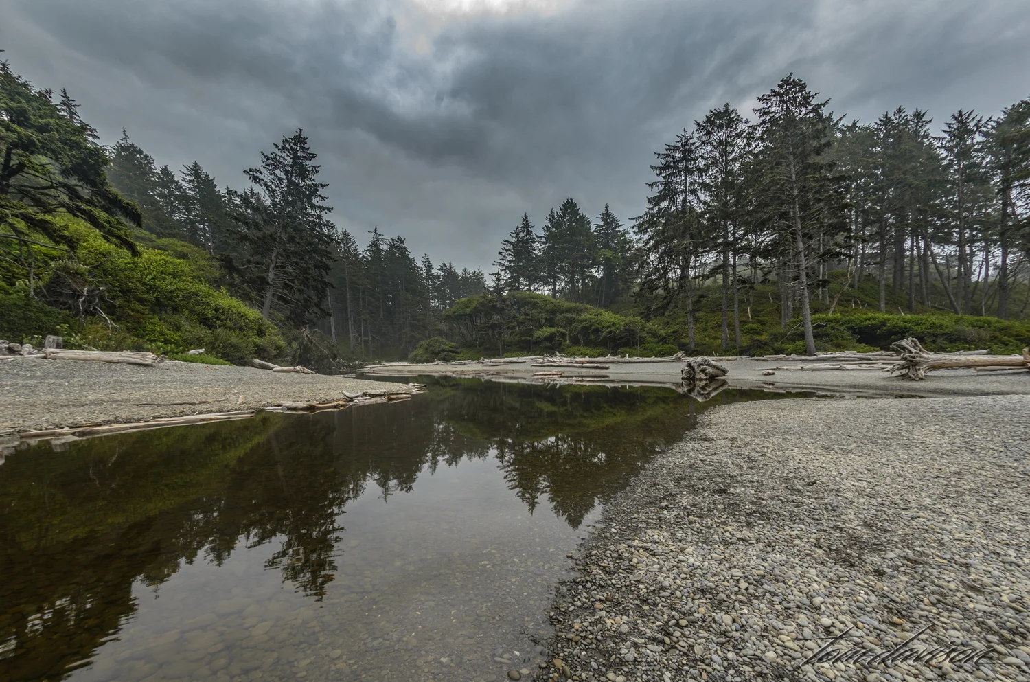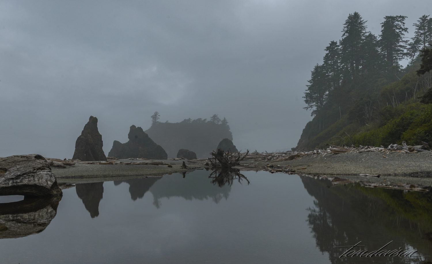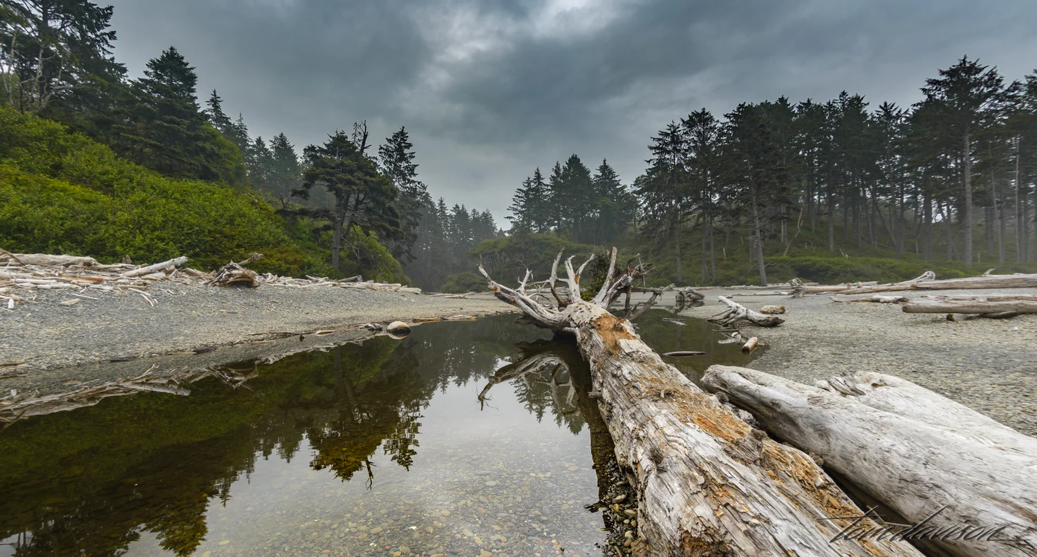 As we returned to the top of the ridge we looked back at the beach. Was it possible the fog was clearing? We decided not to return to the beach but instead head on to the Hoh Rain Forest before the overcast sky cleared and the sun came out. Photography in a rain forest with sunlight is a tough assignment as we learned at the Quinalt Rain Forest.