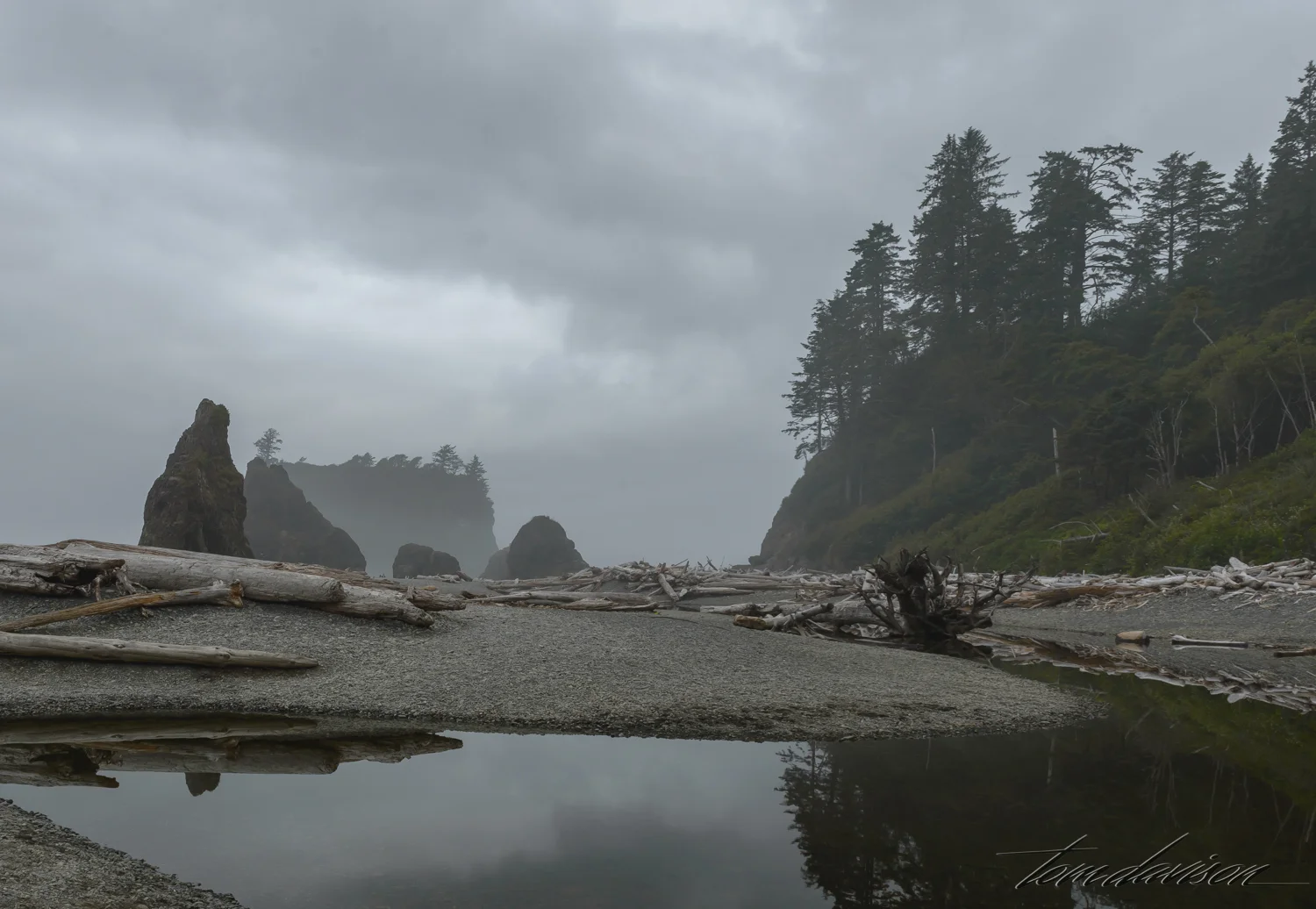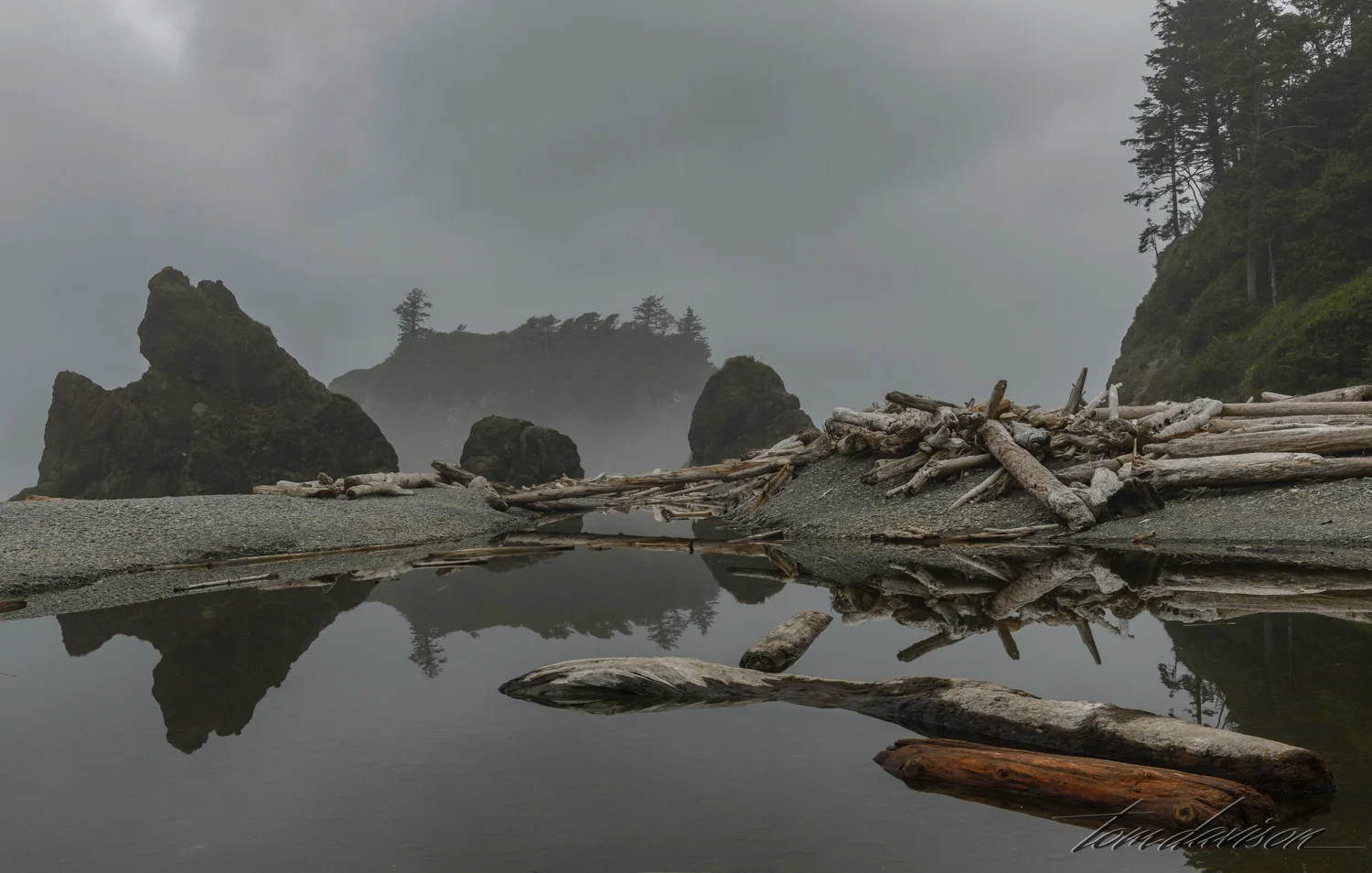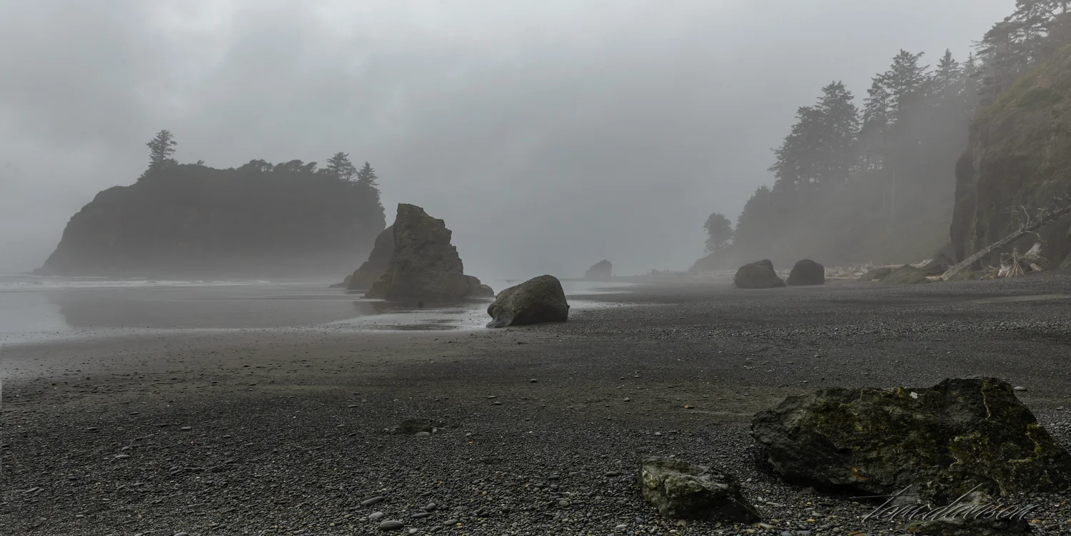 Listed as a favorite among photographers, Ruby Beach was at the top of our list as a must go. As we emerged from the rain forest that is between the parking lot and the beach I must admit I had to scratch my head and wonder, "How do you photograph this?" I found dense fog, huge logs everywhere, and cold weather!" In the spirit of sharing we offer our best. Grab a light jacket and have the cup of hot cocoa I really wanted.