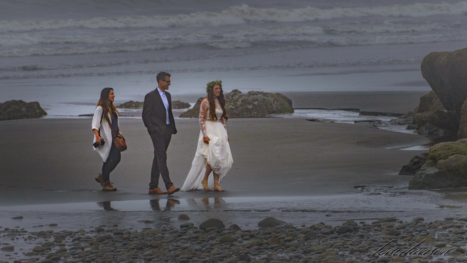 The couple above had arranged some time ago to have their photographs taken at this beach. They had traveled some distance to meet up with their photographer. I shiver just looking at them! They seemed happy in spite of the cold and fog.