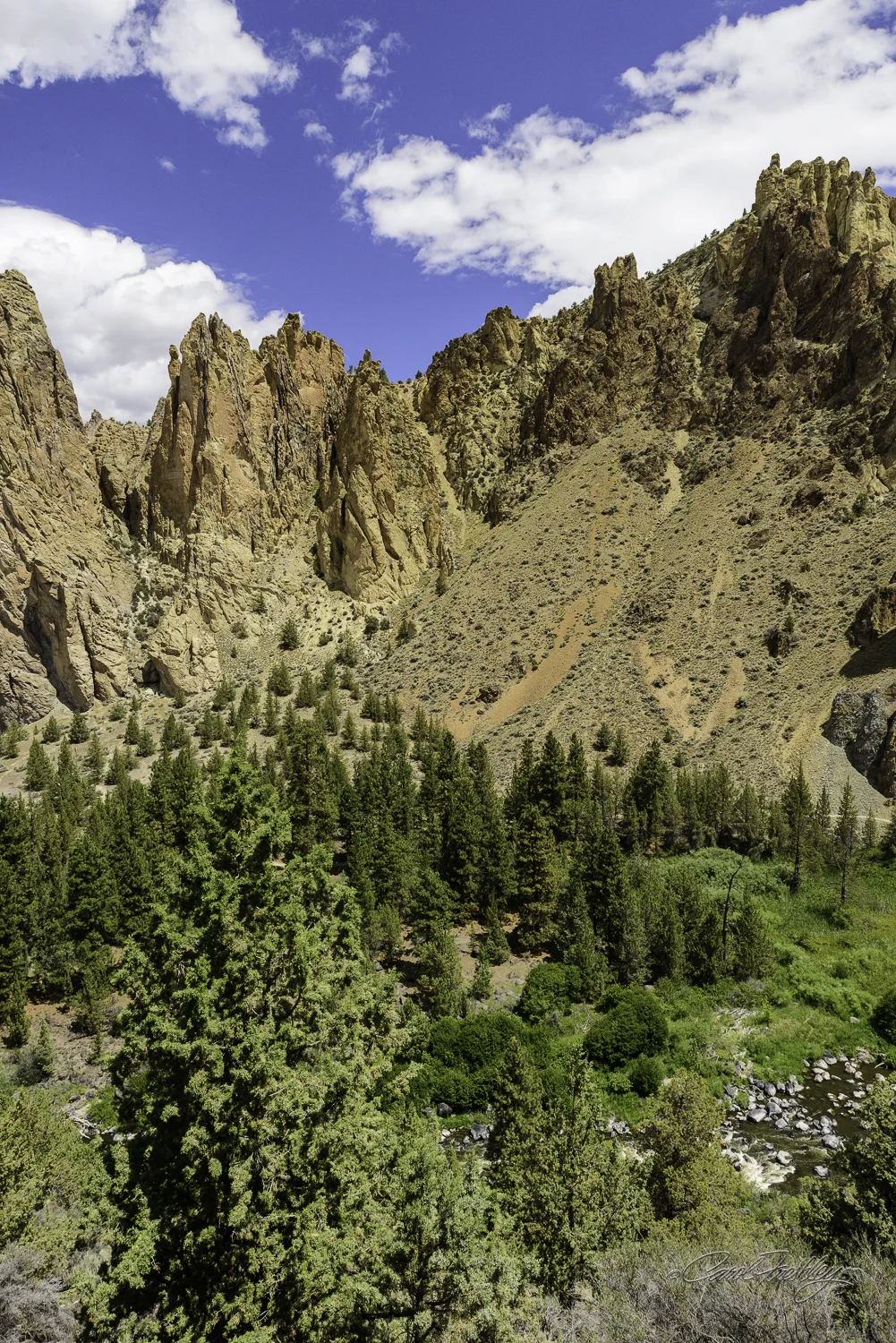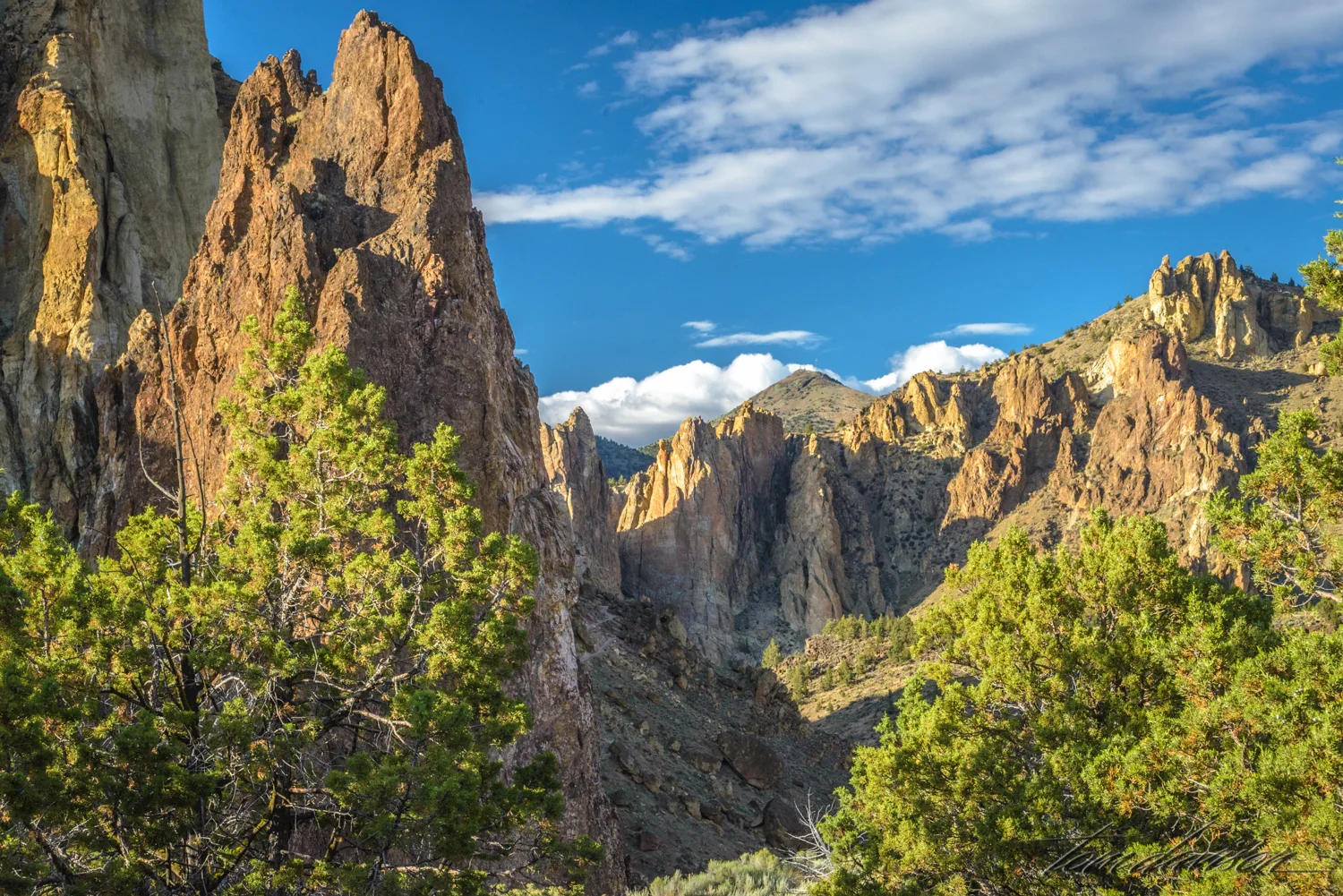 Just at the outskirts of Redmond is a special place where majestic rock spires rise above the Crooked River. The area, called Smith Rock State Park is a year-round destination for rock climbers around the world. There are routes throughout the park for beginner climbers and the expert as well. There are mountain bike and horse trails. There are wonderful walking trails along the Crooked River and up and around the rock spires. There are deer (we saw a mom and her still-spotted baby), lots of birds (we saw a blue heron in the river) and otters. The orientation of the rock spires allow for excellent photography of some of the spires in the morning and the other spires in the evening. It is a good idea to pack a lunch to enjoy in a shady area. You will want to spend the whole day.