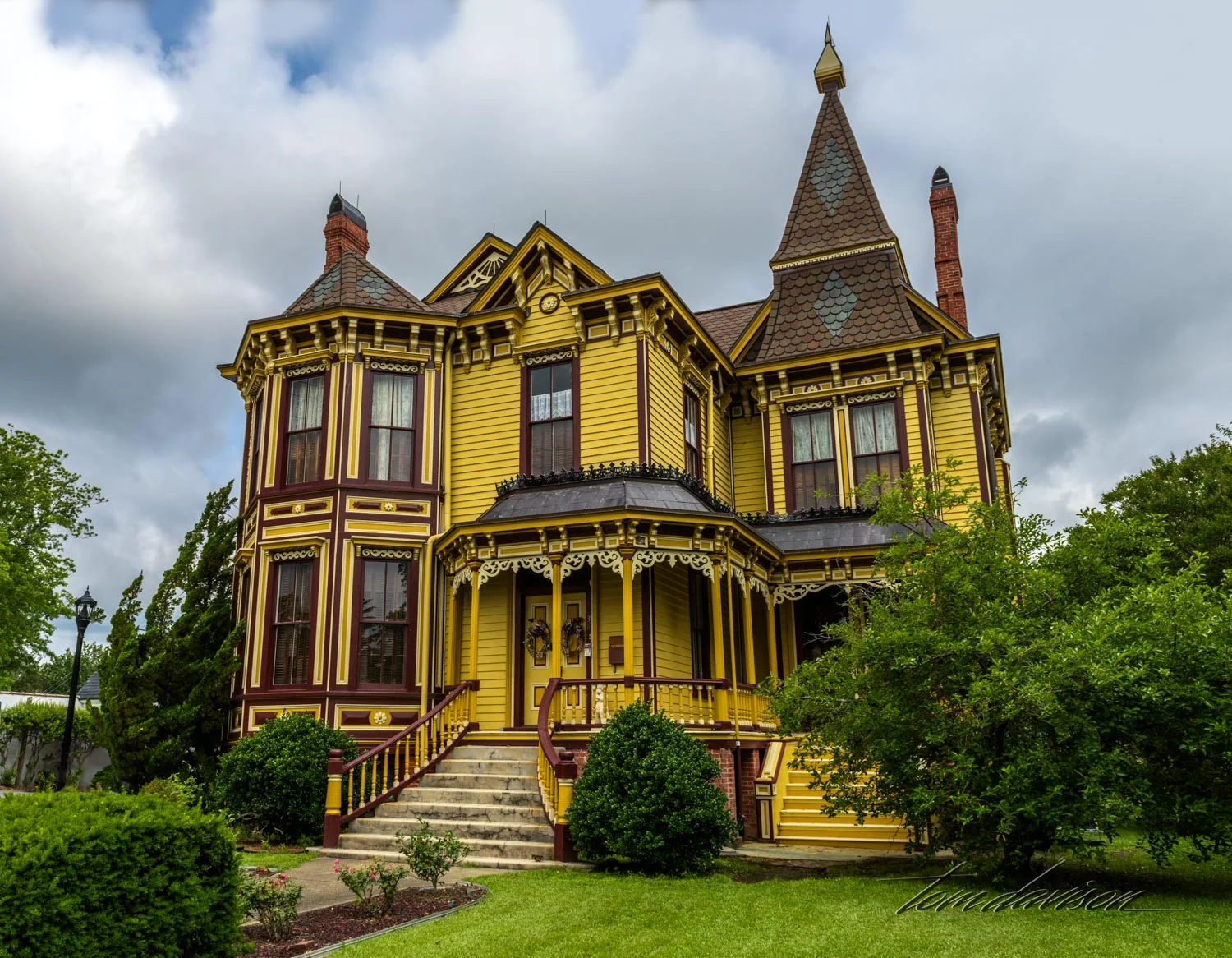 Same as above. It took over two years to build with its turrets, towers, gables, stained glass windows, tiled roof, and portecochere.