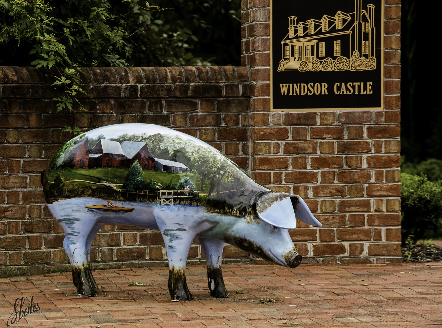 Smithfield Ham is processed in Smithfield. No surprise that these 'porkers' are found around town with art depicting various aspects of Smithfield lifestyle.