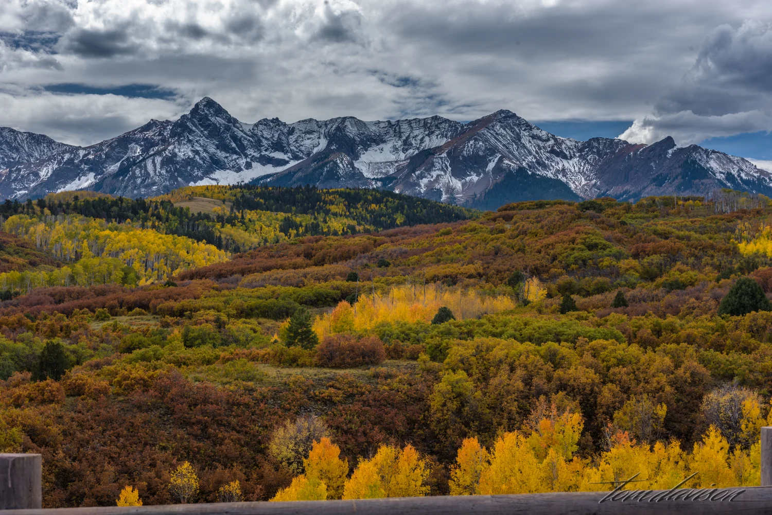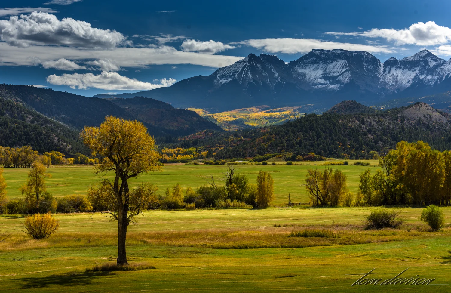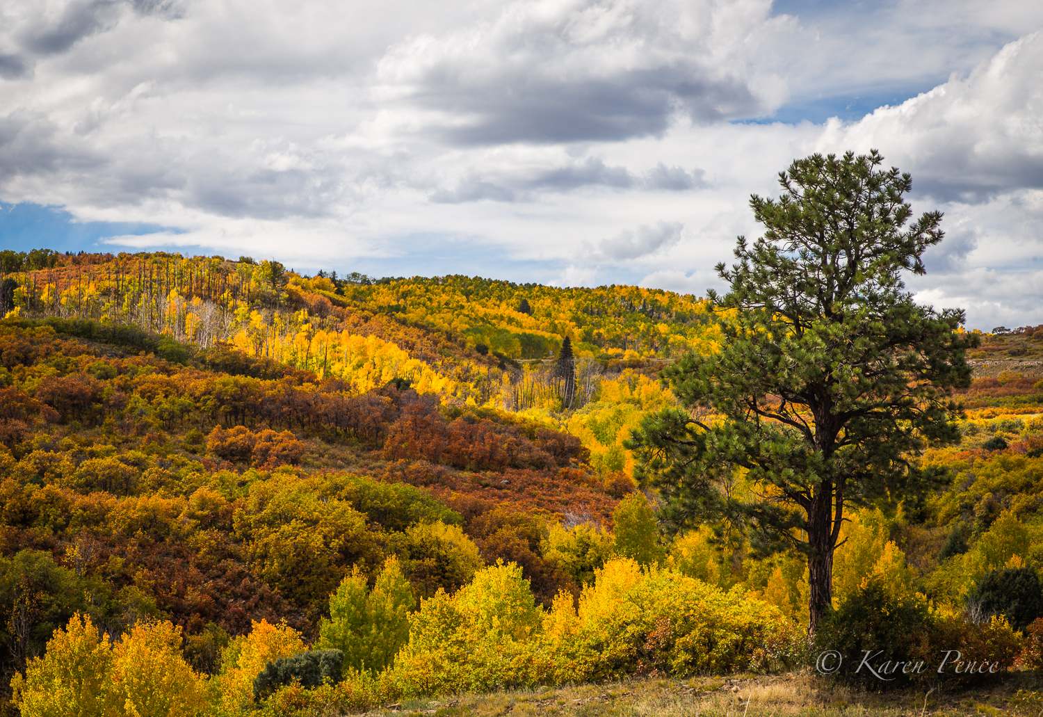We were a bit hesitant to take this road.  It has a reputation for being bumpy, impassable, requiring a high clearance vehicle, etc.  But, it is supposed to be pretty passable when the road would be dry.  We decided to give it a try.  We were rewarded by vast vistas on the south side of the Sneffel Mountain range.  There are old cattle ranches, quilt patterns of aspen and pine and open grassy fields.  If you drink Coors you might recognize Wilson Peak (I don't and I didn't).