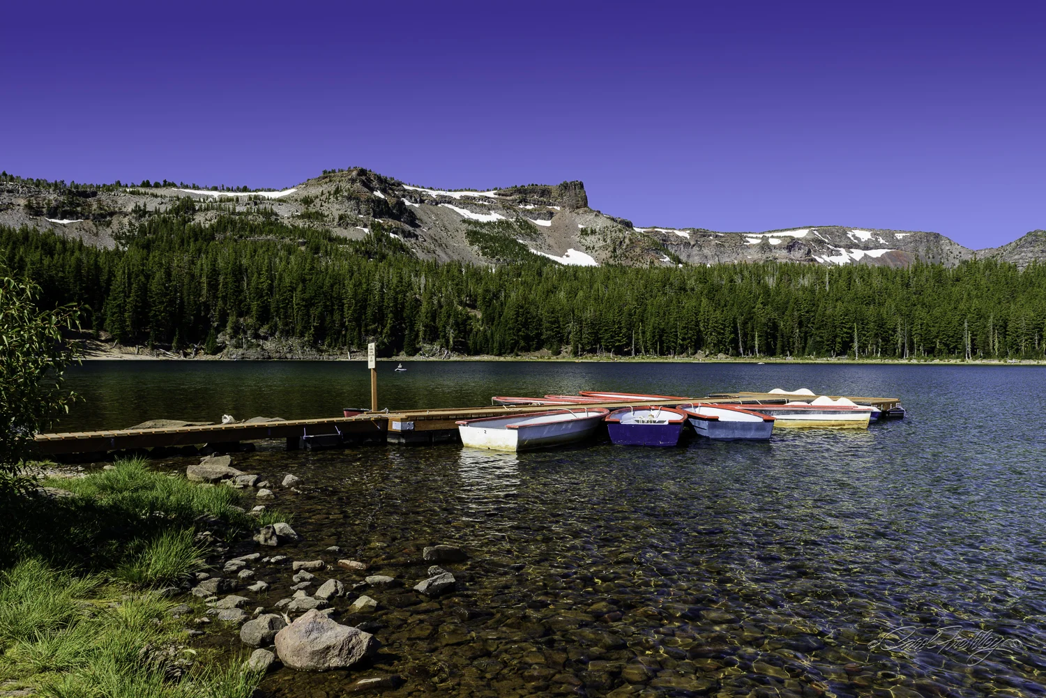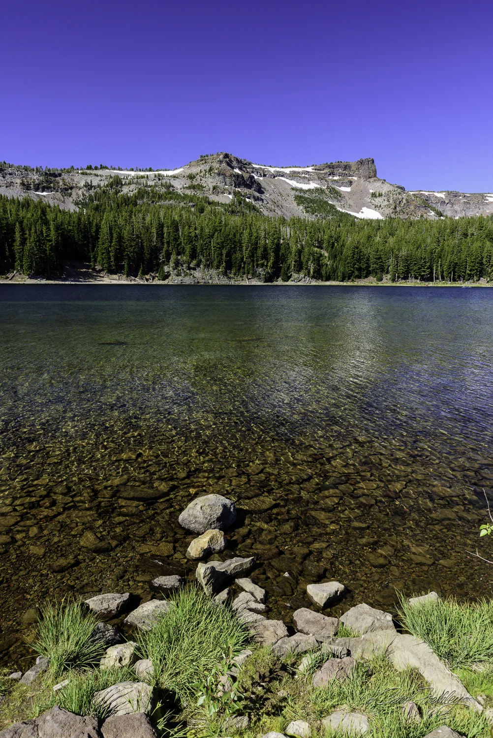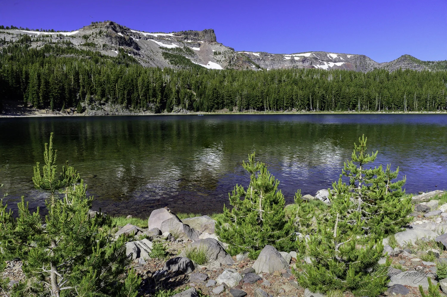 At the end of a dirt road you will find a lovely lake! In this case, the lake is located south of Sisters and fortunately most of the drive was on pavement. The camp site was full. People were fishing, the sky was perfect, and the weather was cool.