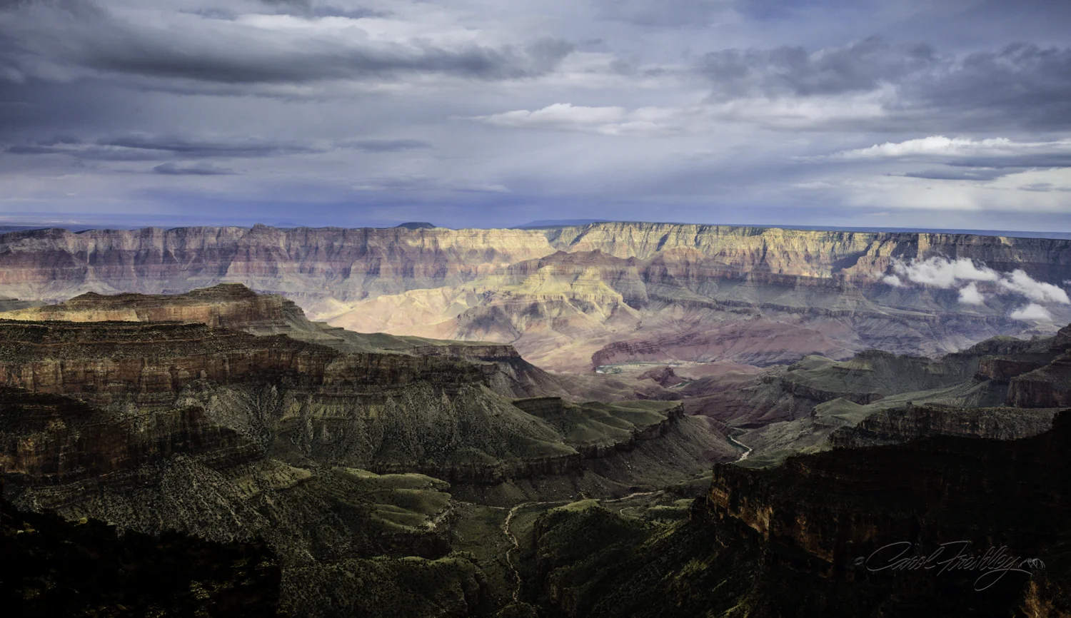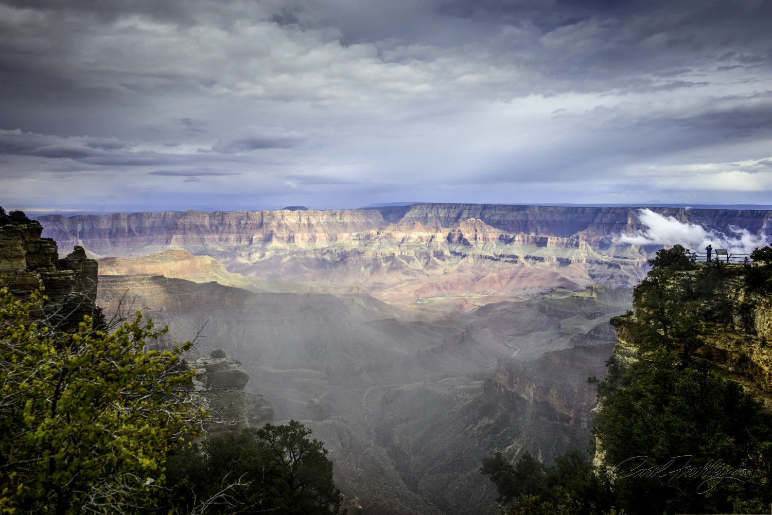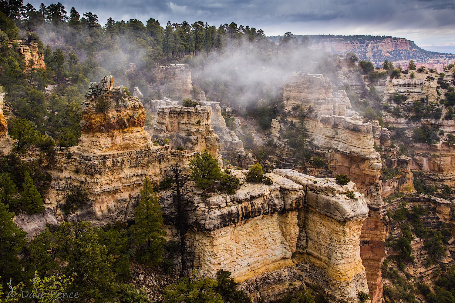 Patches of sun, weaving fog, and wisps of clouds played around in the canyon below us. You can see why David really was hoping to get a great Golden Hour shot of Cape Royale. Me too.