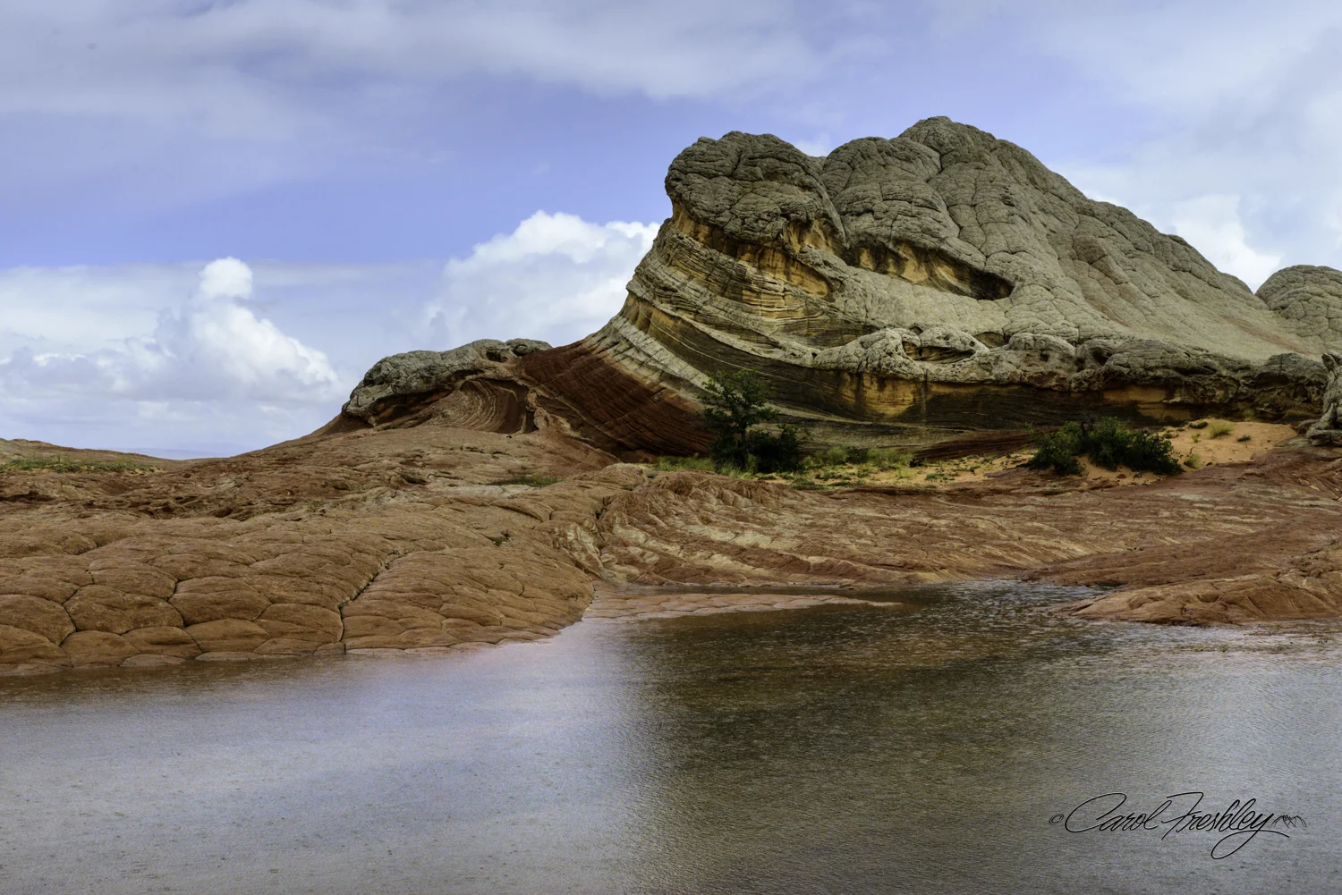 After a good monsoon rain or snowfall, water collects in pools. With luck and calm winds, great reflections of the surrounding rock can be photographed.