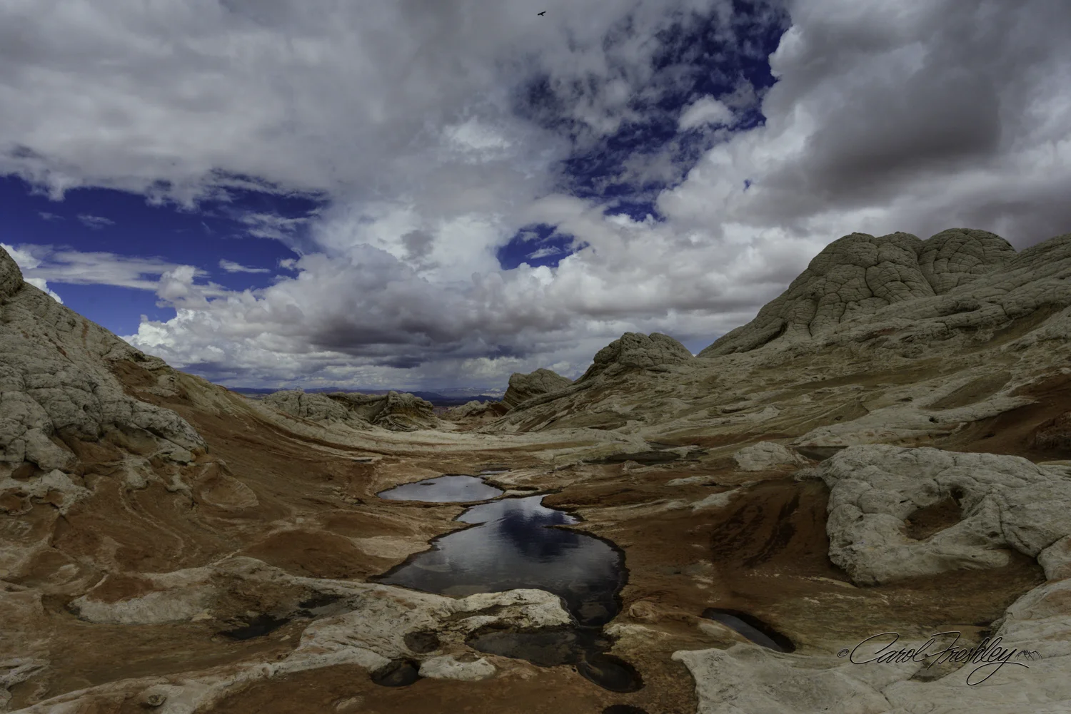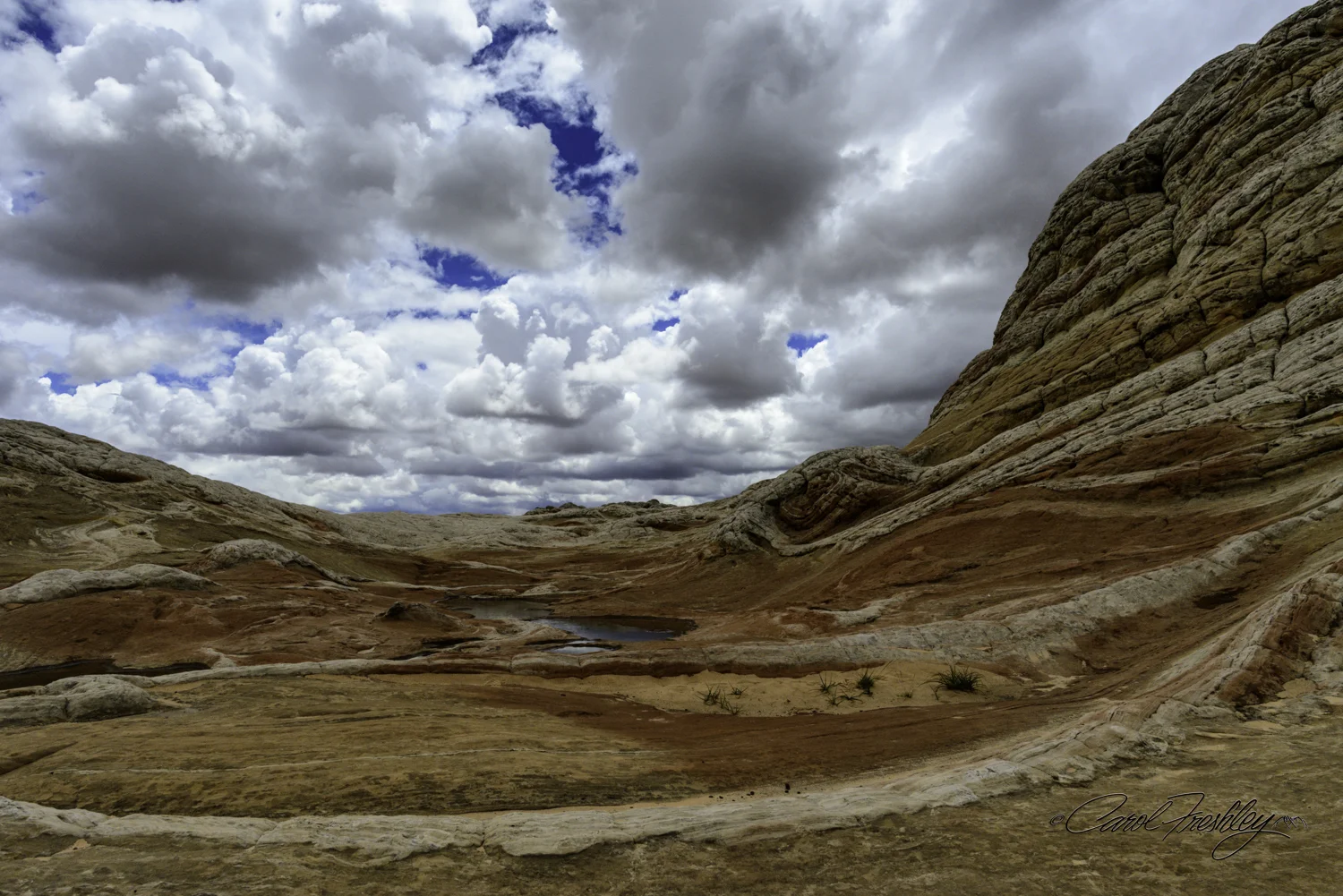 Variously described as 'a geological ice cream sundae melting in the sun', a 'fantasy landscape', 'twisted icing on a cake' or 'alien planet', White Pocket is a bucket list location for many photographers. It is located in the Vermillion Cliffs National Monument near the Arizona/Utah border. It is not an easy location to reach but the heaving and dipping rock formations are worth every bump in the road to get there. Enjoy the images shared by five photographers. They even spent a very cold night in sub-freezing temperatures to capture an image of the Milky Way!